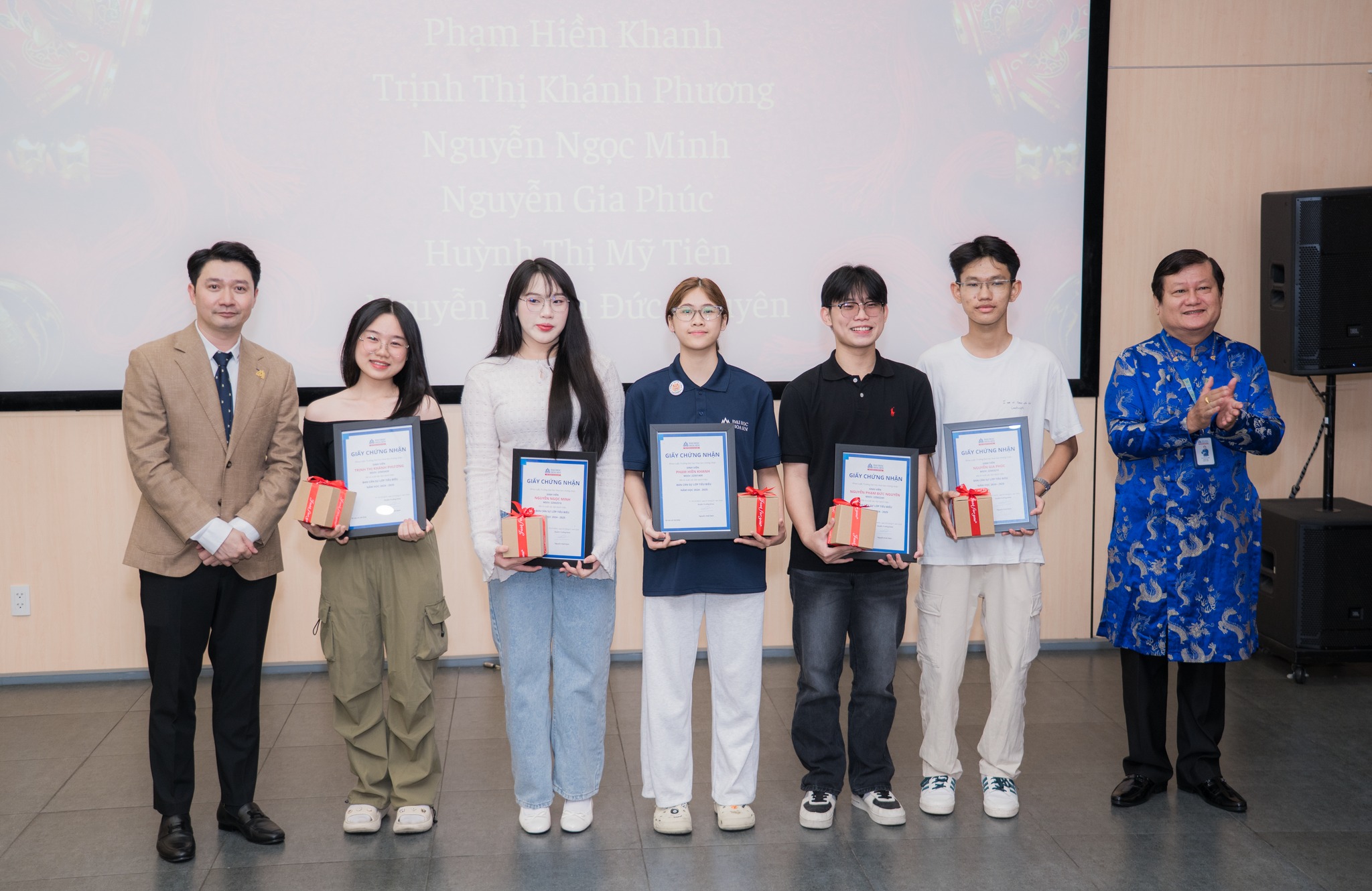 Bên cạnh giấy khen, các bạn còn nhận được những phần quà tri ân ý nghĩa từ Thầy Nguyễn Hoài Nam – Trưởng Khoa Luật cùng các đơn vị đối tác, tạo nên niềm vui nhân đôi trước thềm năm mới.