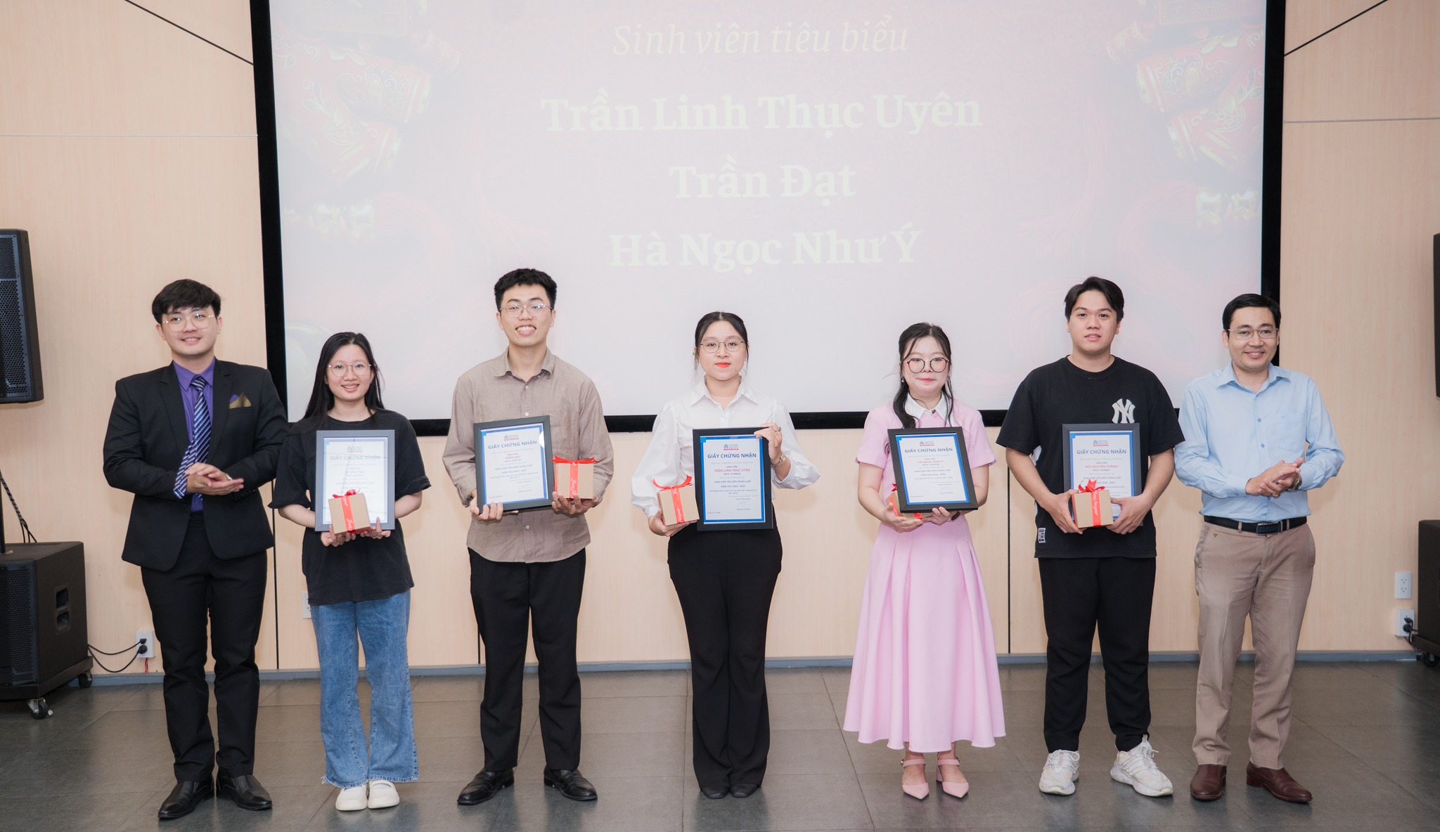 - Sinh viên tiêu biểu (17 sinh viên): Bao gồm các cá nhân đạt giải cao tại các cuộc thi học thuật, sinh viên nhận học bổng Sen Ưu tú và Ban chấp hành CLB Pháp lý HSU – LAWY.