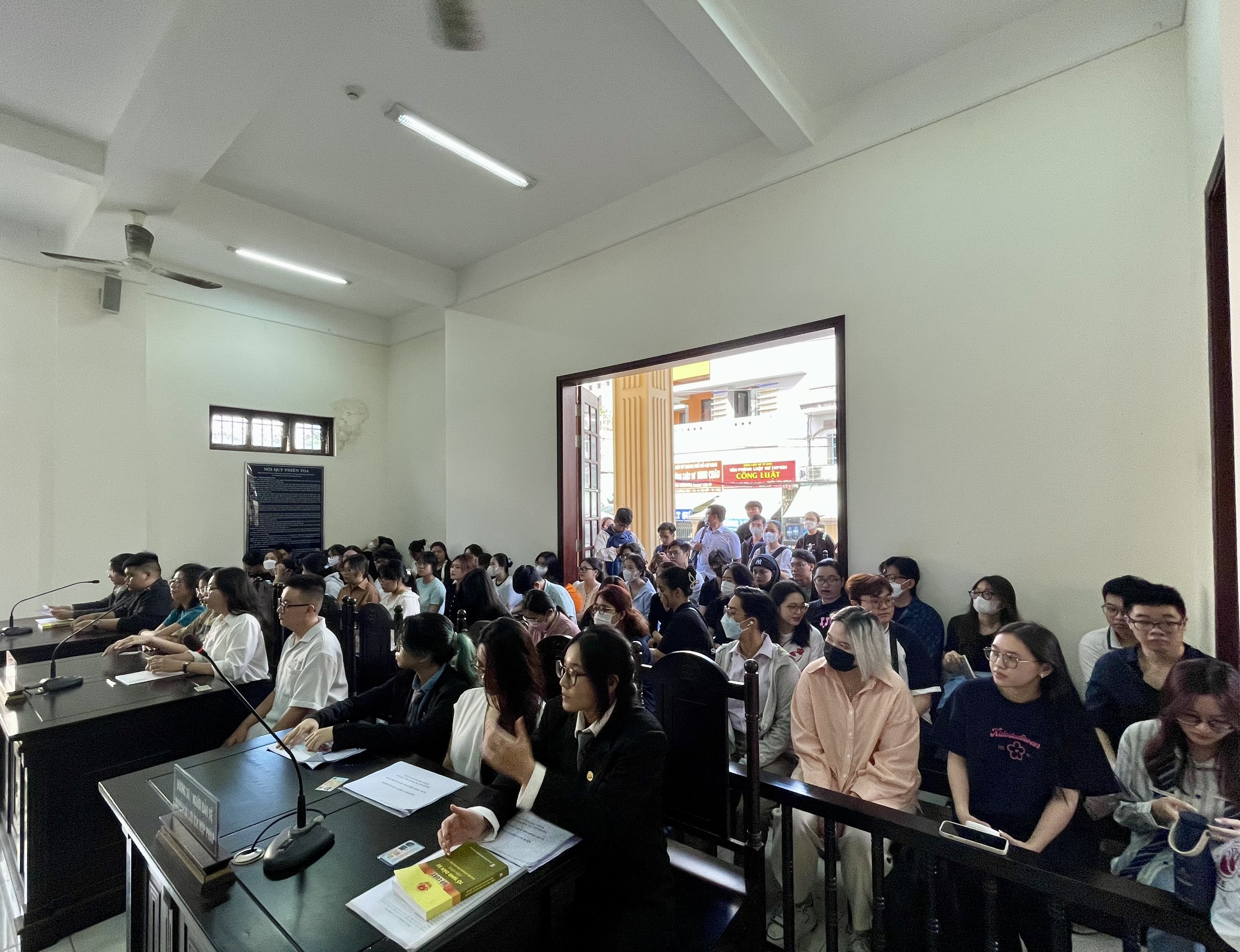 Không chỉ đơn thuần là một buổi học, mà đây còn là một sân chơi, một bài học thực hành sôi động, nơi mà sinh viên được trải nghiệm và áp dụng kiến thức luật vào thực tiễn. Với phương châm “Thực học – Thực làm”, sinh viên không chỉ ngồi nghe giảng mà còn tham gia quan sát quy trình xét xử, đưa ra lập luận và phán quyết từ Phiên tòa giả định. Đây là cơ hội tuyệt vời để sinh viên rèn luyện kỹ năng tranh biện và làm quen với quy trình xét xử trong một môi trường thực tế.
