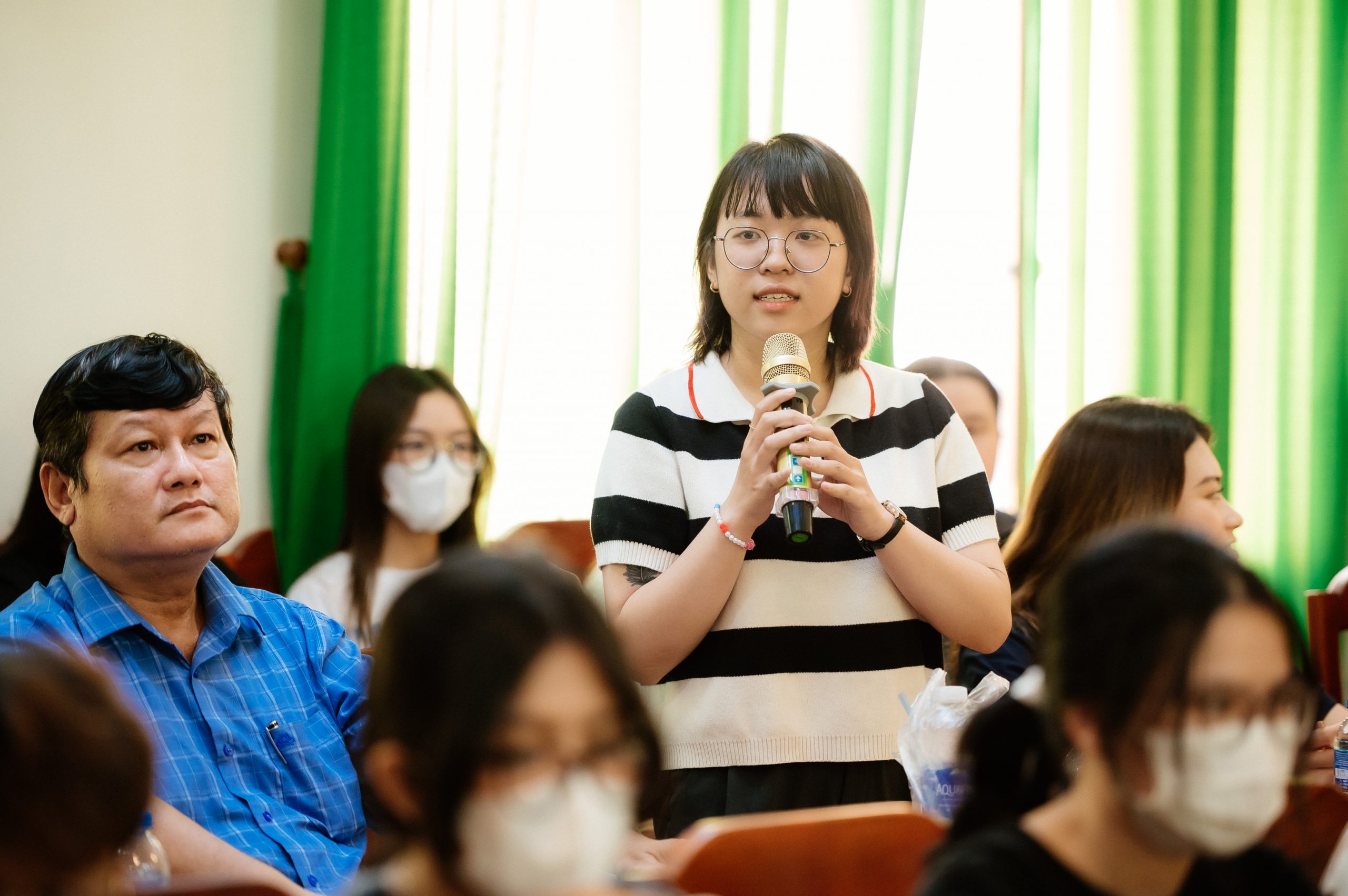 Sau khi đi tham quan phòng xử án, Sinh viên Chuyên ngành Luật đã có buổi giao lưu với lãnh đạo TAND quận 5. Mở đầu buổi giao lưu Bà Đỗ Thị Ngọc Bích- Phó Chánh án TAND Quận 5 TP.HCM; Bà Lê Linh Sương, thẩm phán sơ Cấp đã giới thiệu tổng quan về mô hình, loại hình hoạt động của TAND Việt Nam nói chung và Tòa án nhân dân quận 5 nói riêng. Bên cạnh đó các bạn sinh viên còn được cung cấp những thông tin về cách thức để ứng tuyển vào Tòa án nhân dân; yêu cầu, tiêu chuẩn của các chức danh tư pháp: thư ký, thẩm phán và cách ngạch của thẩm phán; một số công việc cụ thể cũng như những kỹ năng và kiến thức cần trang bị để có thể đáp ứng các công việc tại Tòa án. Đặc biệt, trong buổi trao đổi, Bà Đỗ Thị Ngọc Bích- Phó Chánh án TAND Quận 5 TP.HCM đã giải đáp nhiều thắc mắc của sinh viên về những vấn đề, nội dung công việc của Tòa án, điều kiện để trở thành thực tập sinh tại Tòa án. Đồng thời, các bạn sinh viên đã được chia sẻ về con đường sự nghiệp, những khó khăn trong quá trình gắn bó với ngành Tòa án của Phó Chánh án Đỗ Thị Ngọc Bích, để các bạn sinh viên có thể hiểu rõ hơn về tính chất công việc cũng như những khó khăn phải đối mặt nếu sinh viên có nguyện vọng sau khi tốt nghiệp sẽ vào ngành Tòa án.
