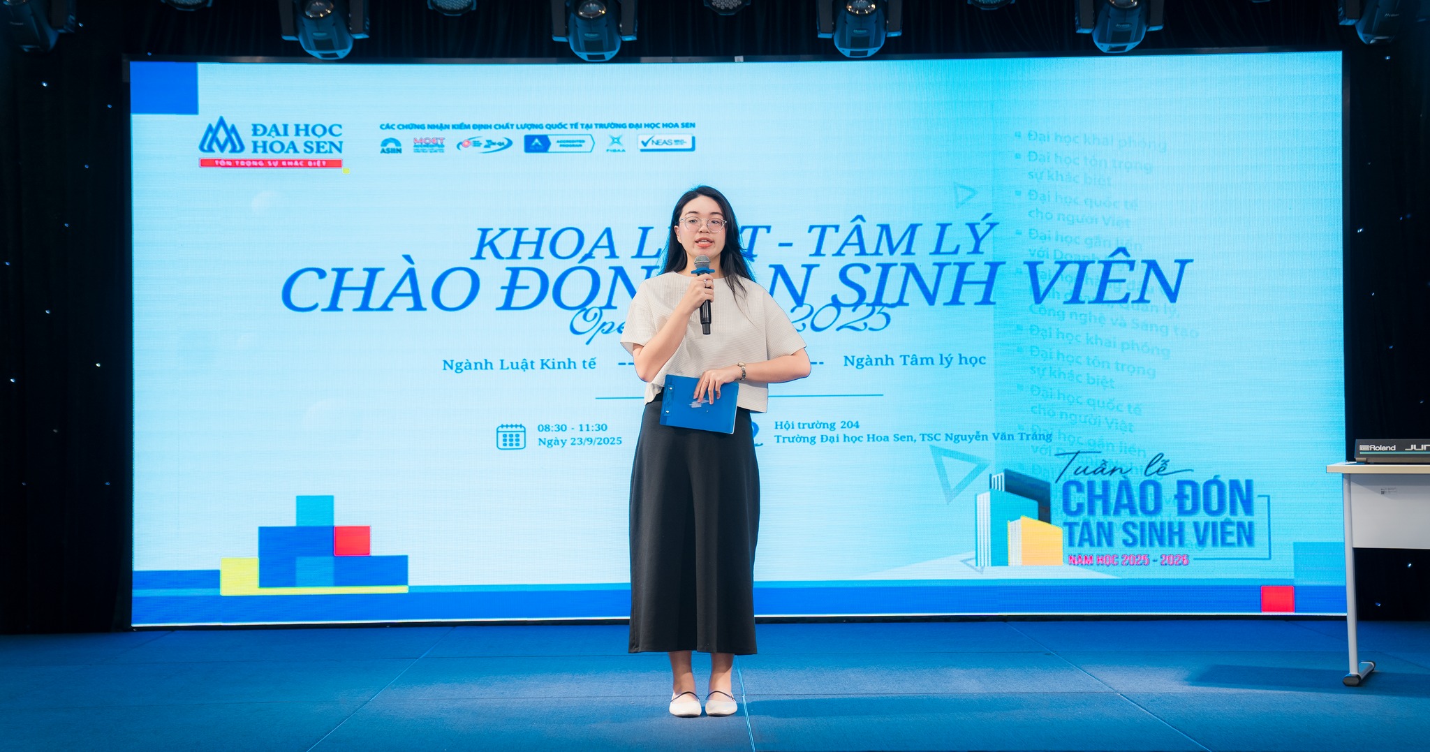 Sáng ngày 23/9, không khí tại Trường Đại học Hoa Sen (HSU) trở nên náo nhiệt hơn bao giờ hết khi hàng trăm tân sinh viên khóa 2025 thuộc Khoa Luật chính thức bước vào buổi sinh hoạt đầu khóa. Với chủ đề “Ngày hội tri thức và cảm hứng”, sự kiện không chỉ là lời chào đón nồng hậu mà còn là bệ phóng quan trọng cho những “tân binh” trên con đường chinh phục sự nghiệp tương lai.