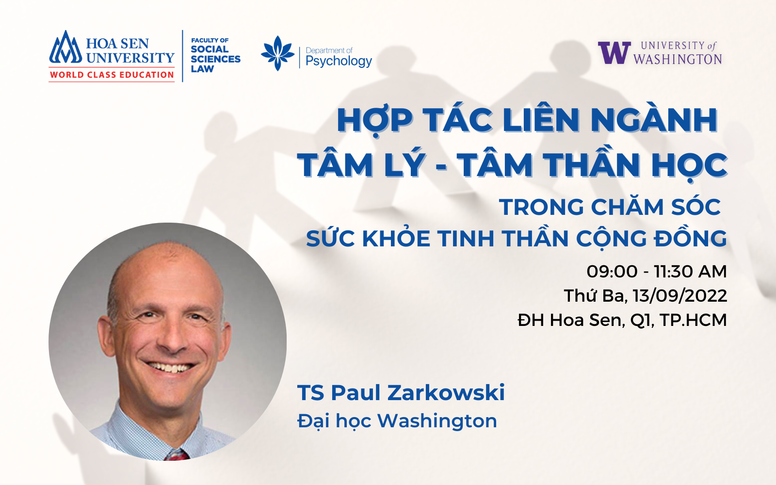 Hợp tác liên ngành Tâm lý – Tâm thần học ngày càng phổ biến, cho thấy những lợi ích và nhu cầu phát triển trình độ chuyên môn, cũng như tạo ra sự hỗ trợ hiệu quả trong hoạt động chăm sóc sức khỏe tinh thần cộng đồng. Với những tiềm năng của việc phối hợp đa ngành, Trung tâm Nghiên cứu và Tham vấn Tâm lý cùng Chương trình Tâm lý học, Đại học Hoa Sen tổ chức Workshop: Hợp tác liên ngành Tâm lý – Tâm thần học trong Chăm sóc sức khỏe tinh thần cộng đồng.