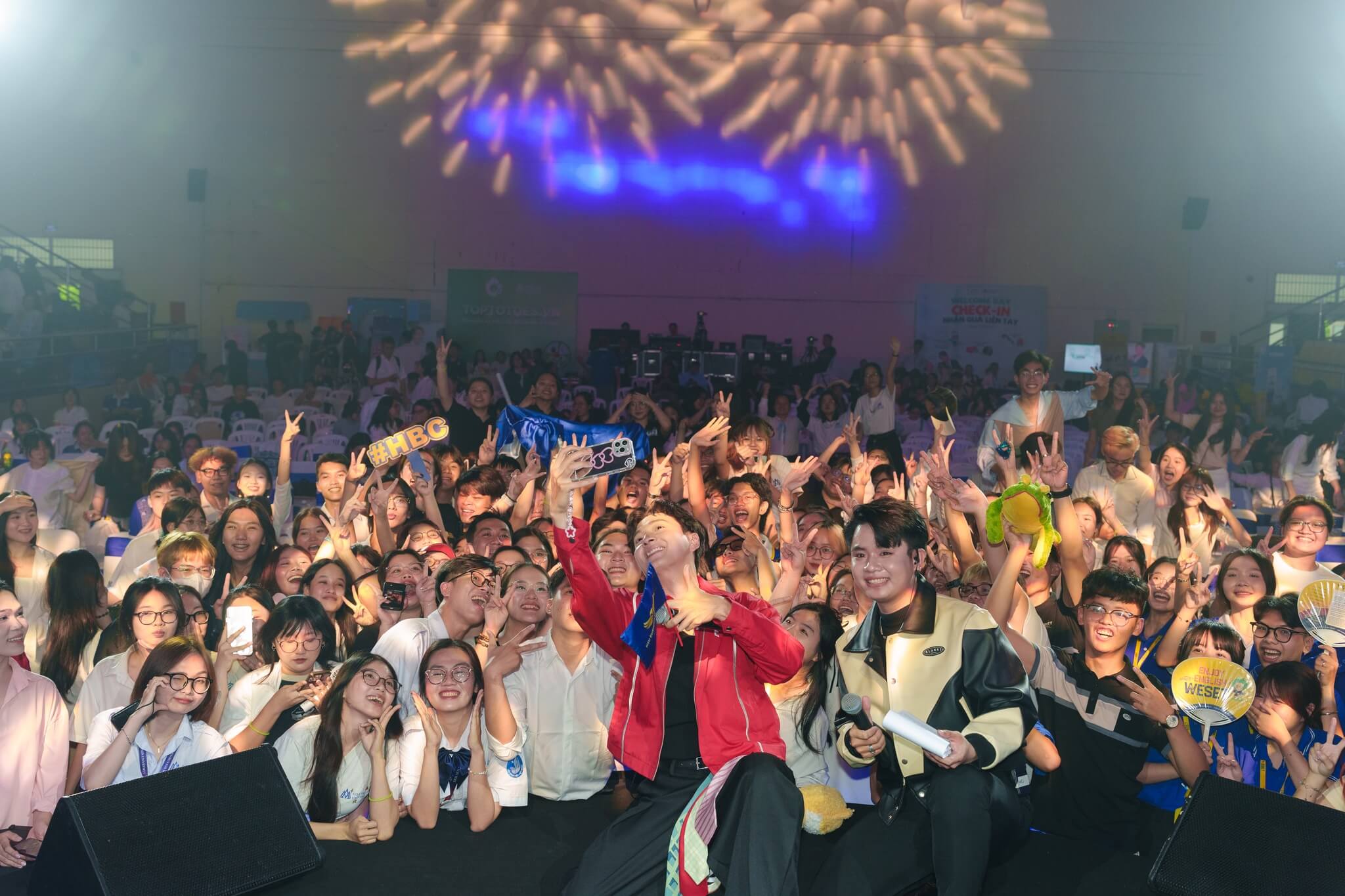 Ca sĩ Ngô Kiến Huy đã thổi một làn gió tươi mới vào Buổi Lễ. Những chia sẻ chân thành về hành trình sự nghiệp của anh đã truyền cảm hứng mạnh mẽ đến các bạn sinh viên. Đặc biệt, màn trình diễn ca khúc “Truyền Thái Y” của anh đã khiến cả khán đài bùng nổ trong sự phấn khích.
