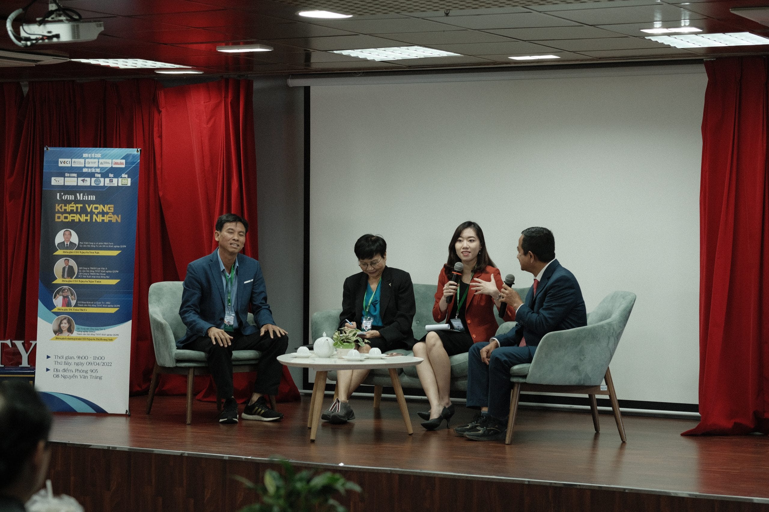 Bên cạnh đó, với vai trò là những người đi trước trên hành trình khởi nghiệp. Trong suốt buổi trao đổi, các bạn sinh viên đã được lắng nghe các diễn giả bao gồm ??? ?????̂̃? ??̆? ???̀ – Phó TGĐ Công ty cổ phần Mebi Farm, ??? ?????̂̃? ???̣? ???̂́? – GĐ Công ty TNHH Luật Việt Á, ?? ???̂̀? ???̣ ?́? – GV Khoa Kinh tế và Quản trị – HSU, ??? ?????̂̃? ???̣ ???̀?? ??? – GĐ Trung tâm Ứng dụng Tâm lý hướng nghiệp Jobway truyền đạt và chia sẻ những kinh nghiệm vô cùng thú vị trong suốt hành trình mang tên “Khởi nghiệp” của chính mình.