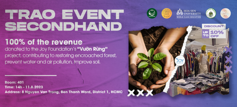 11.08.2023, The TRAO EVENT has been successfully held with nearly 500 clothing sets sold, concluding the lively thrifting atmosphere that stirred up the Nguyen Van Trang campus space. The small and lovely gifts have been delivered to the participants, carrying meaningful environmental messages. The project resulted in planting 128 trees. The project aims to engage and accompany Units, Organizations, Individuals,… and the Community, creating a space for connection, sharing, reusing, recycling, and proper disposal of old items, all within the framework of sustainable development in line with the trend of a circular economy for the community and the environment. Each...