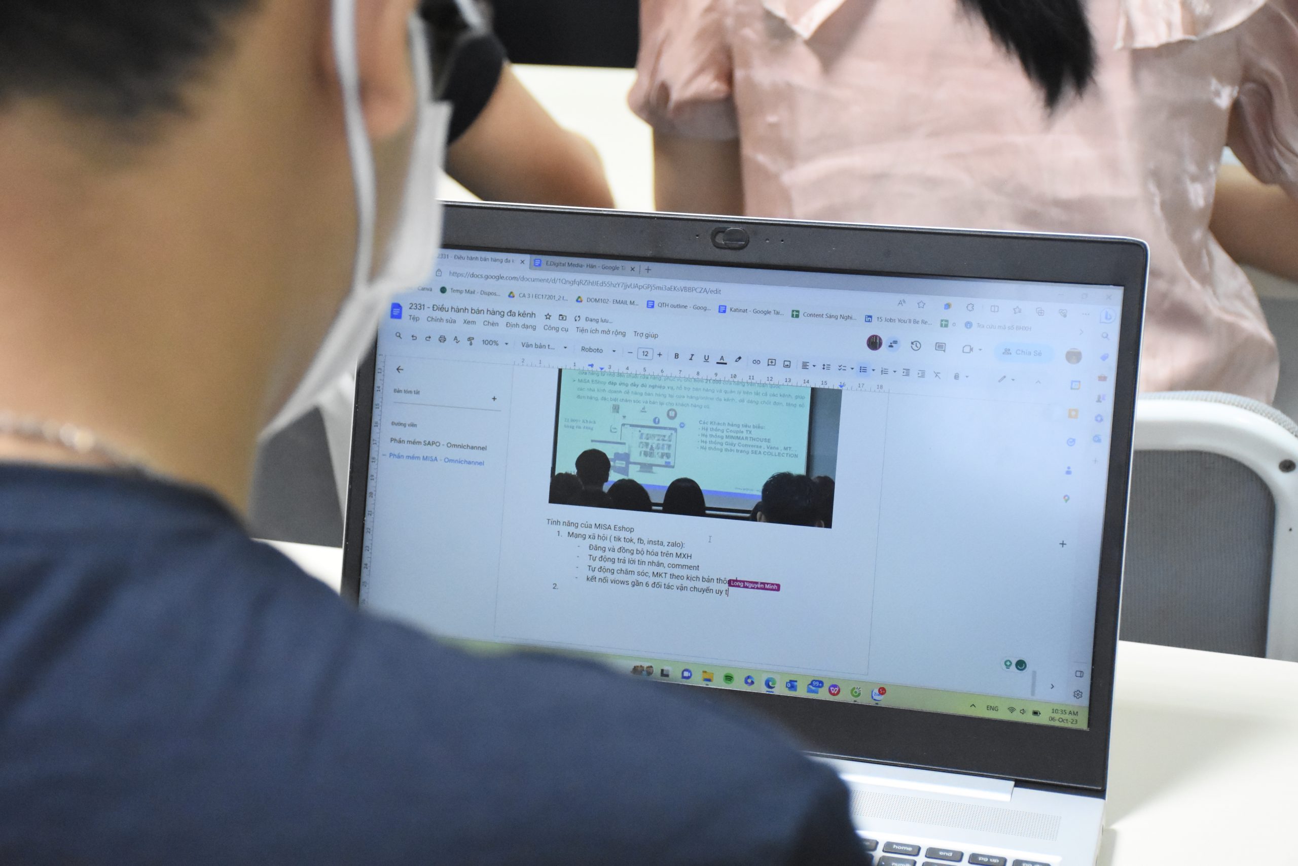 Within the framework of the collaboration between Hoa Sen University and Misa Corporation, on October 6, 2023, students from the Multichannel Sales Management class, led by Ms. Dang Truong Thuy Anh, participated in a special workshop on the topic of Misa eShop. This event is noteworthy in a series of collaborative activities between Hoa Sen University and Misa Corporation, aiming to provide practical knowledge and skills for students in the field of multichannel sales management. Additionally, it introduces MISA eShop – an advanced and effective multichannel sales platform.