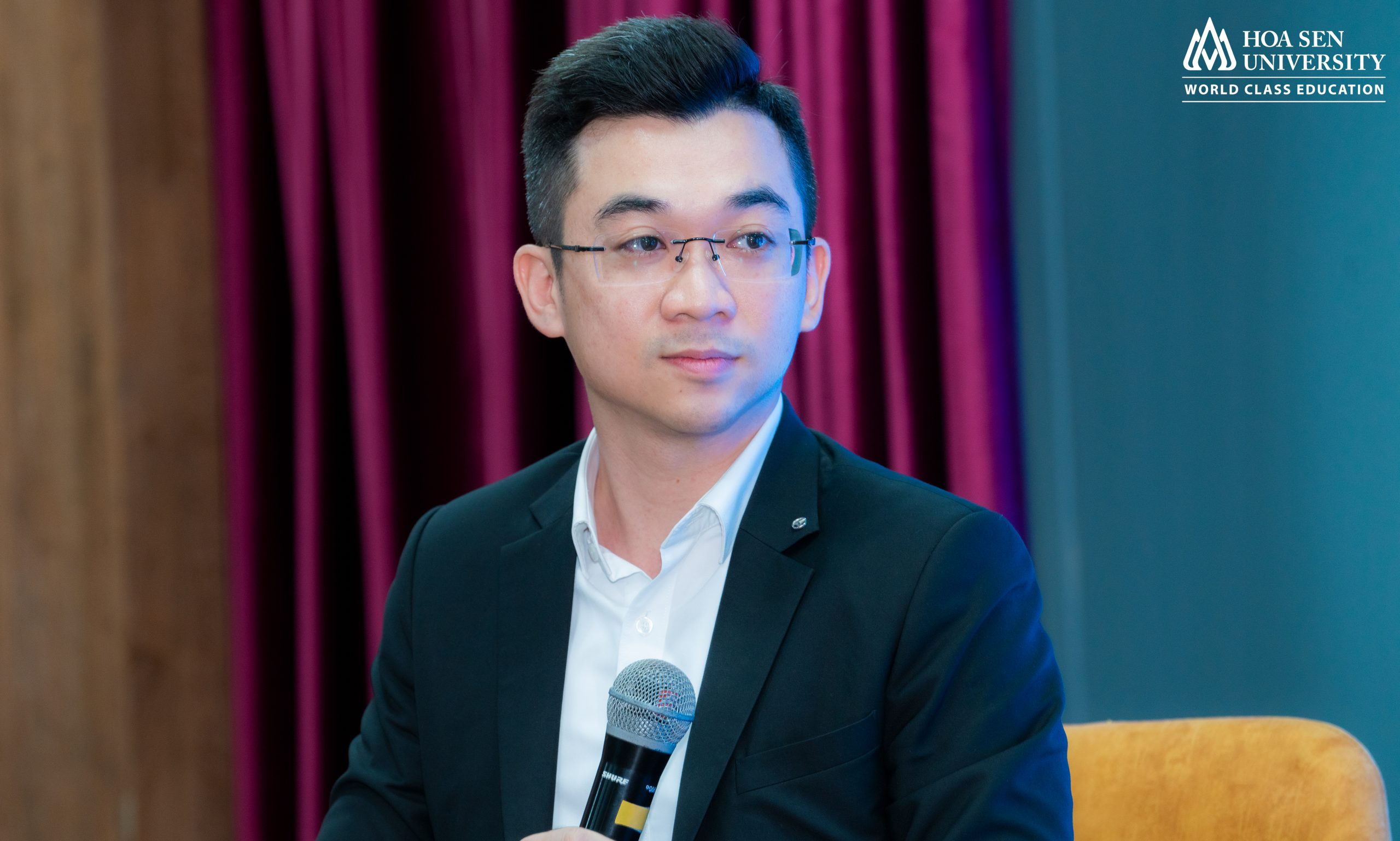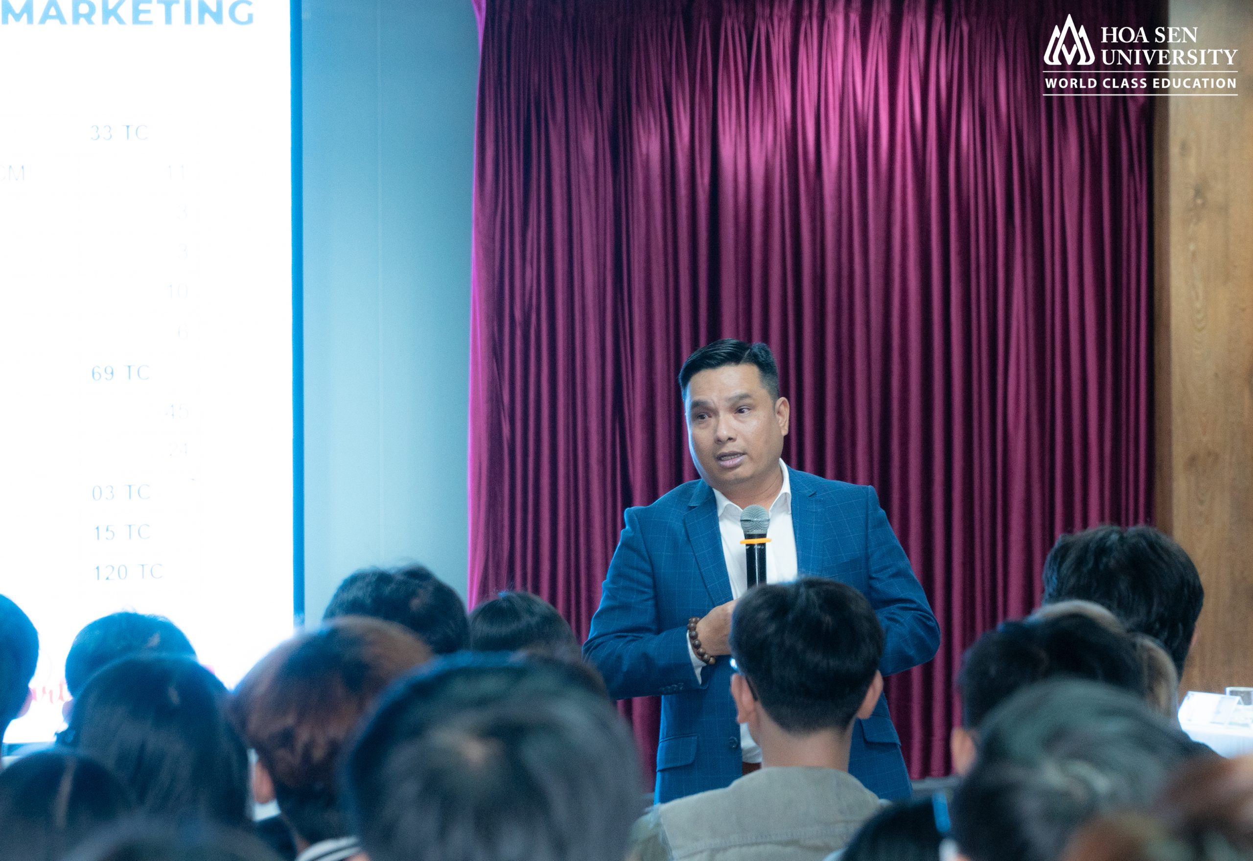 Regarding the Opening Session for the Marketing and Digital Marketing majors, there was the presence of a former Marketing major student from Batch 12, currently working at Mercedes-Benz Haxaco. New students had the opportunity to listen to practical insights shared by Mr. Nguyen Quang Minh.