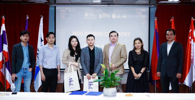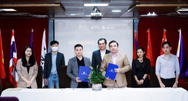 On the morning of March 15th, 2022 in room 903, the Faculty of Economics & Business solemnly held a ceremony of signing a collaboration agreement with Coc Coc Technology Co., Ltd.
