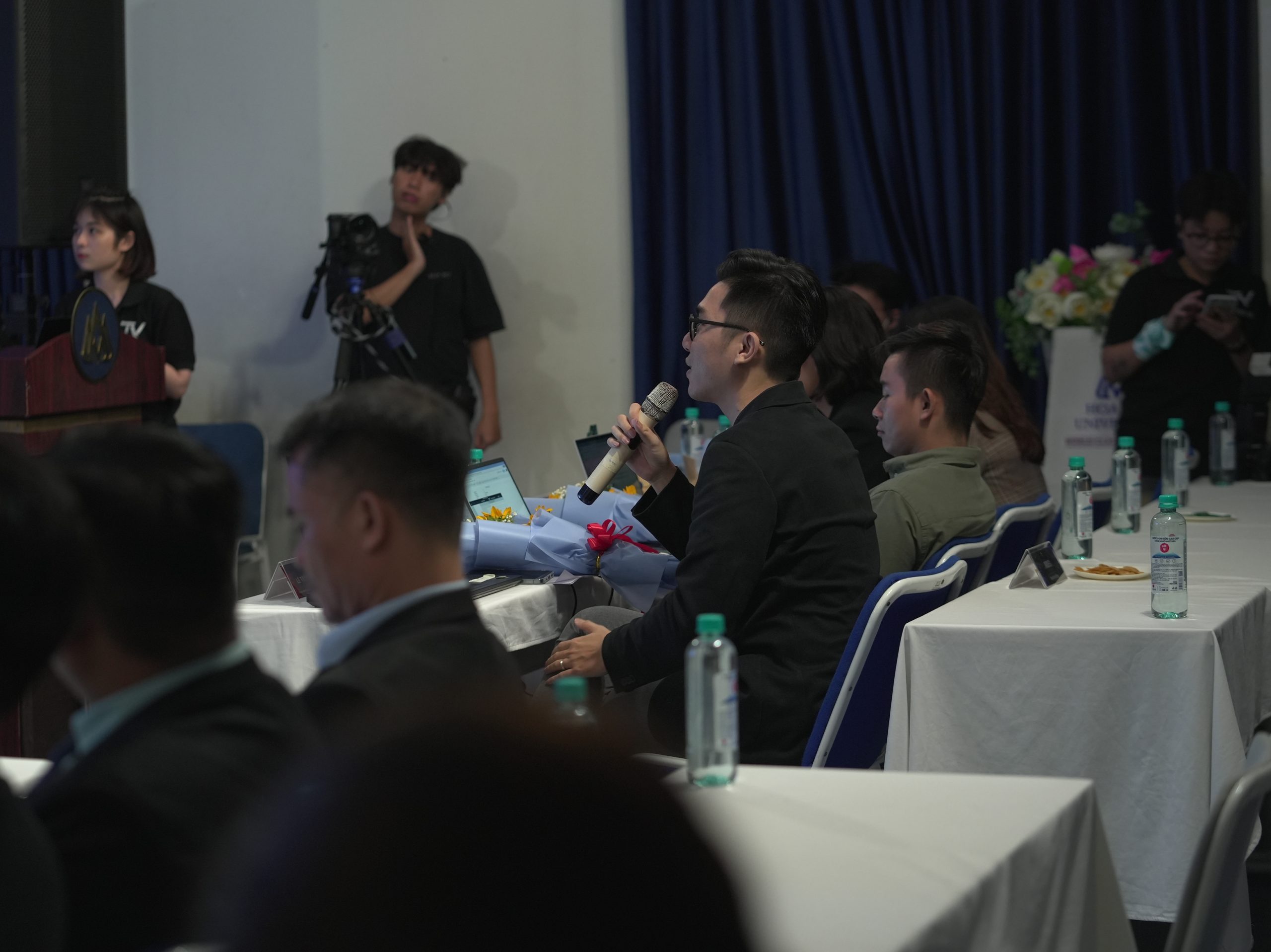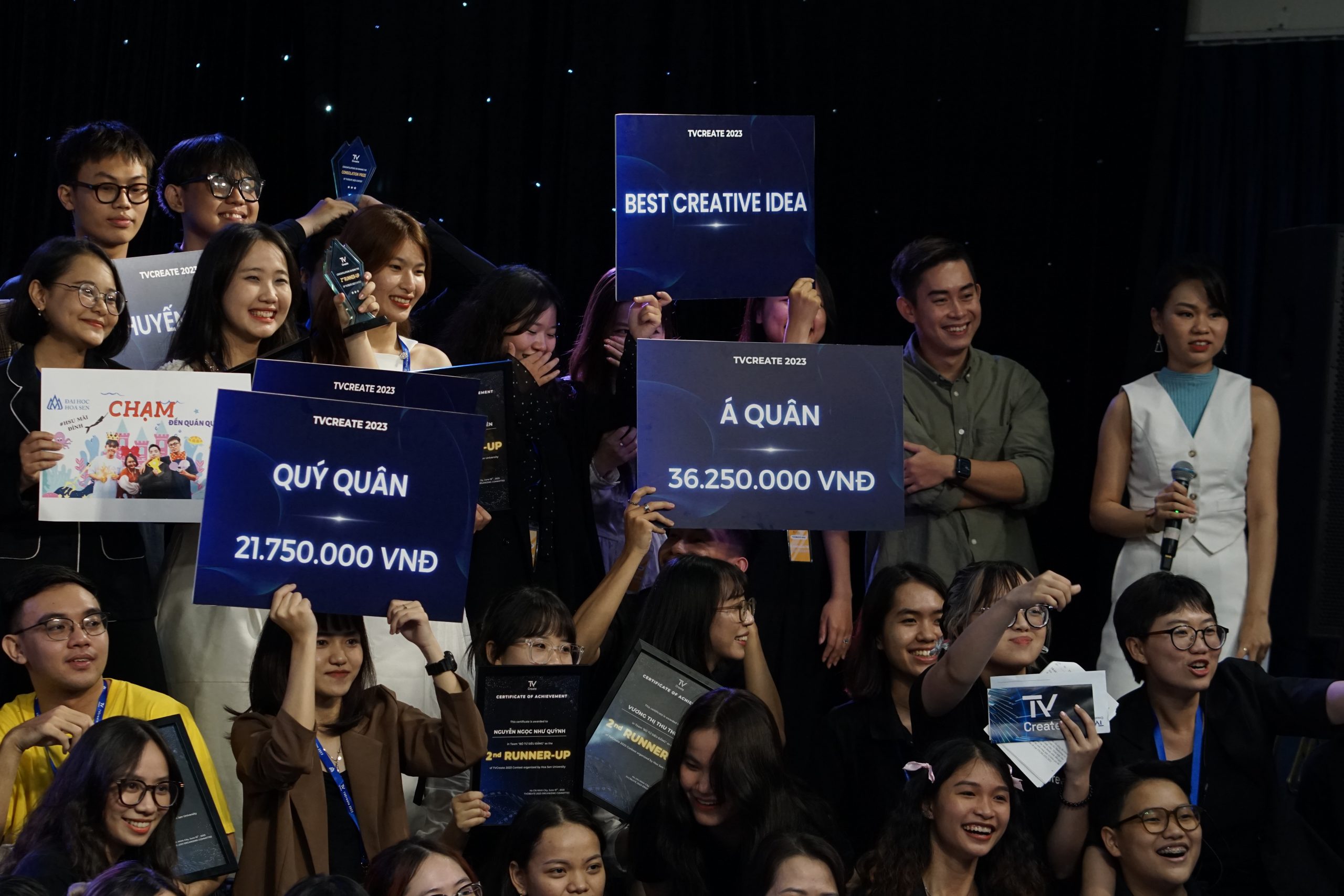 The participation of Associate Professor Nguyen Hai Ninh – Vice Rector of Hoa Sen University, who shared: ‘The competition gathered 110 teams from nearly 40 universities across the country’s three regions.This demonstrates that TVCreate’s platform has attracted Marketing students from all over the country. Competitions like this serve as a clear testament to the training philosophy of Hoa Sen University, emphasizing “Entrepreneurial Spirit and Practical Learning – Real-world Application”. I believe that the experiences you gained in the competition will serve as valuable assets as you enter the workforce after graduation. The school’s leadership is proud of all of you, and I look forward to the 14th edition of the competition in 2024, anticipating it to be larger, more professional, and continuing to enhance our pride in Hoa Sen University’s TVCreate competition for students”.