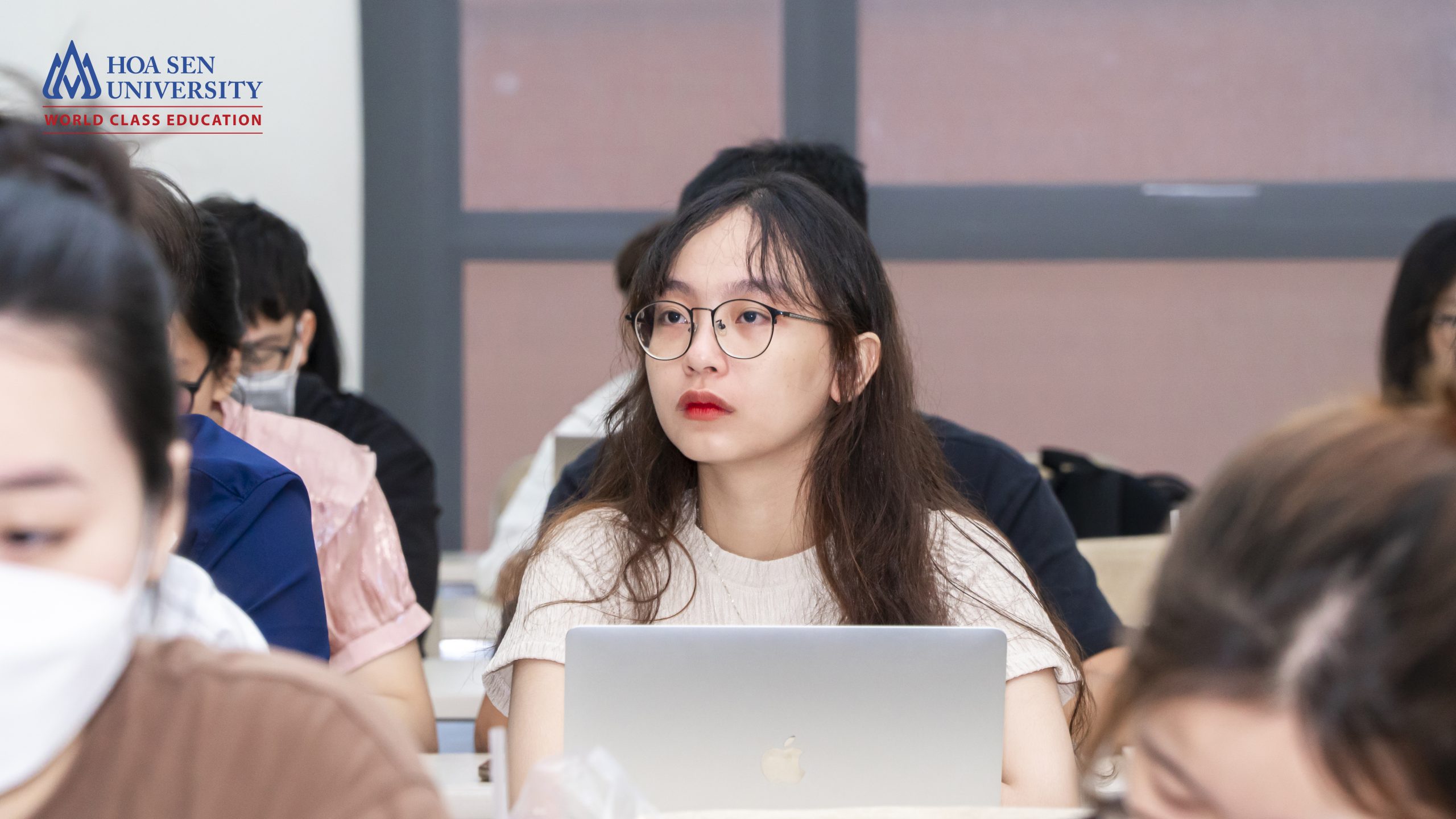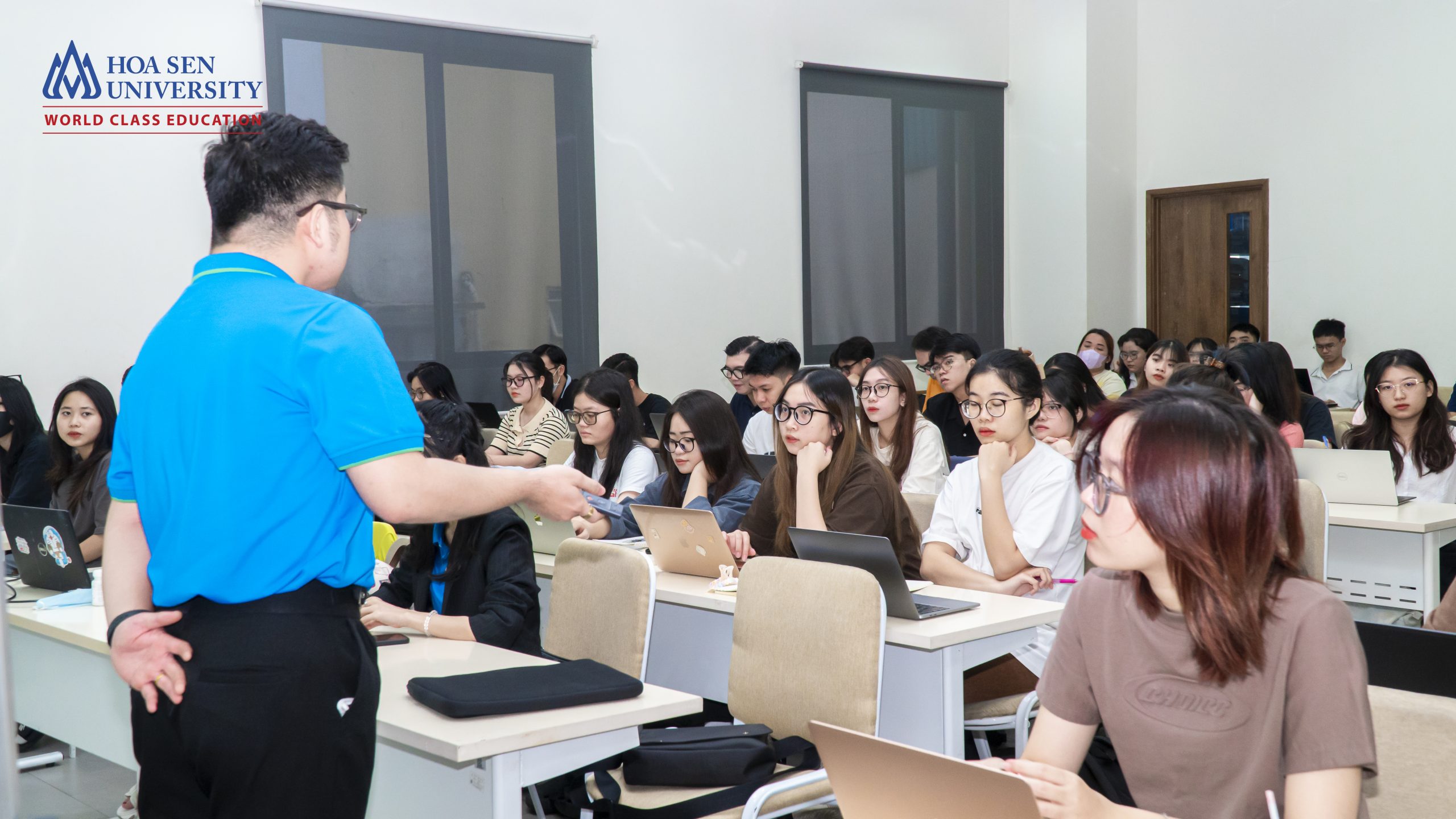 At the workshop, students from the Faculty of Economics – Business had the opportunity to meet and learn from Mr. Nguyen Manh Dong, a talented trainer from Sapo. Notably, he is also known as a former student of the Business Management major, Batch 13, at Hoa Sen University. With over 6 years of profound experience in e-commerce, along with consulting and supporting thousands of successful retail stores and businesses in implementing e-commerce models, Mr. Dong shared inspiring insights and practical knowledge, providing valuable strategies for the attending students