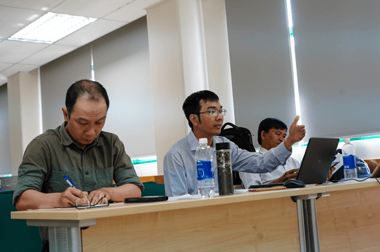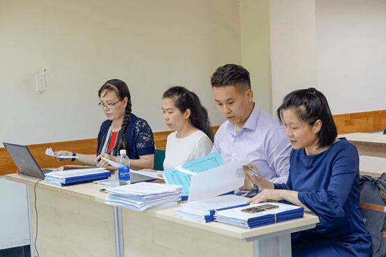 Ban Hội đồng tập trung theo dõi và cho nhận xét về bài của sinh viên