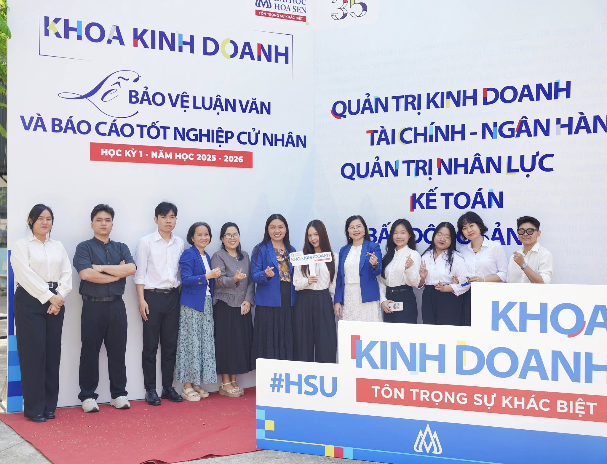 Cột mốc trước tốt nghiệp được đánh dấu qua Lễ Bảo vệ Luận văn và Báo cáo tốt nghiệp Cử nhân do Khoa Kinh doanh – Trường Đại học Hoa Sen tổ chức từ ngày 29/12/2025 đến ngày 03/01/2026. Sự kiện quy tụ sinh viên của 5 ngành học: Quản trị Kinh doanh, Quản trị Nhân lực, Tài chính – Ngân hàng, Kế toán và Bất động sản, trở thành dấu ấn học thuật quan trọng khép lại hành trình nhiều năm học tập, nghiên cứu và trải nghiệm tại giảng đường.