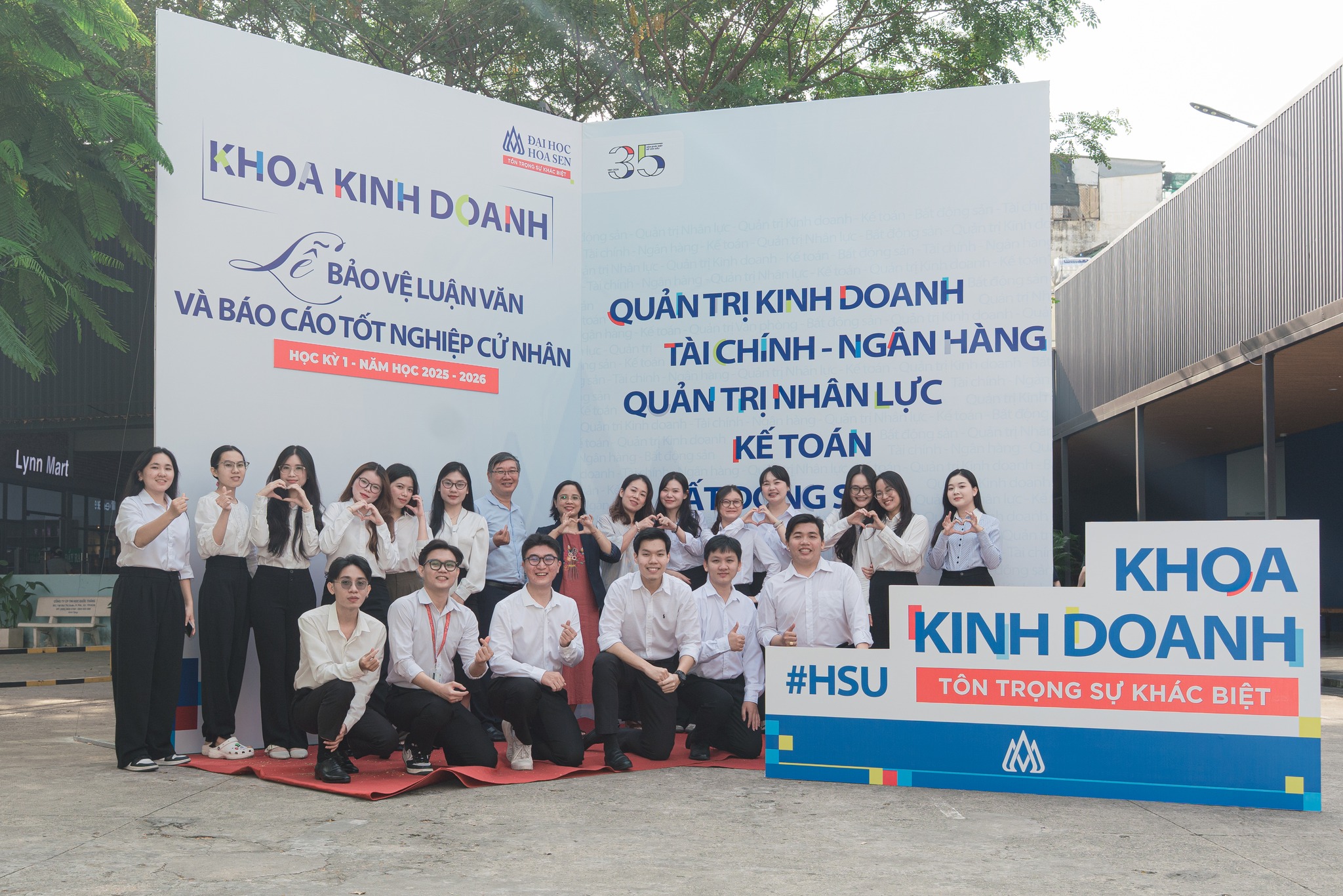 Lễ Bảo vệ Luận văn và Báo cáo Tốt nghiệp Cử nhân học kỳ 1, năm học 2025 – 2026 dành cho sinh viên 5 ngành Quản trị Kinh doanh, Quản trị Nhân lực, Tài chính – Ngân hàng, Kế toán và Bất động sản được tổ chức từ ngày 29/12/2025 đến ngày 03/01/2026 do Khoa Kinh doanh – Trường Đại học Hoa Sen tổ chức.