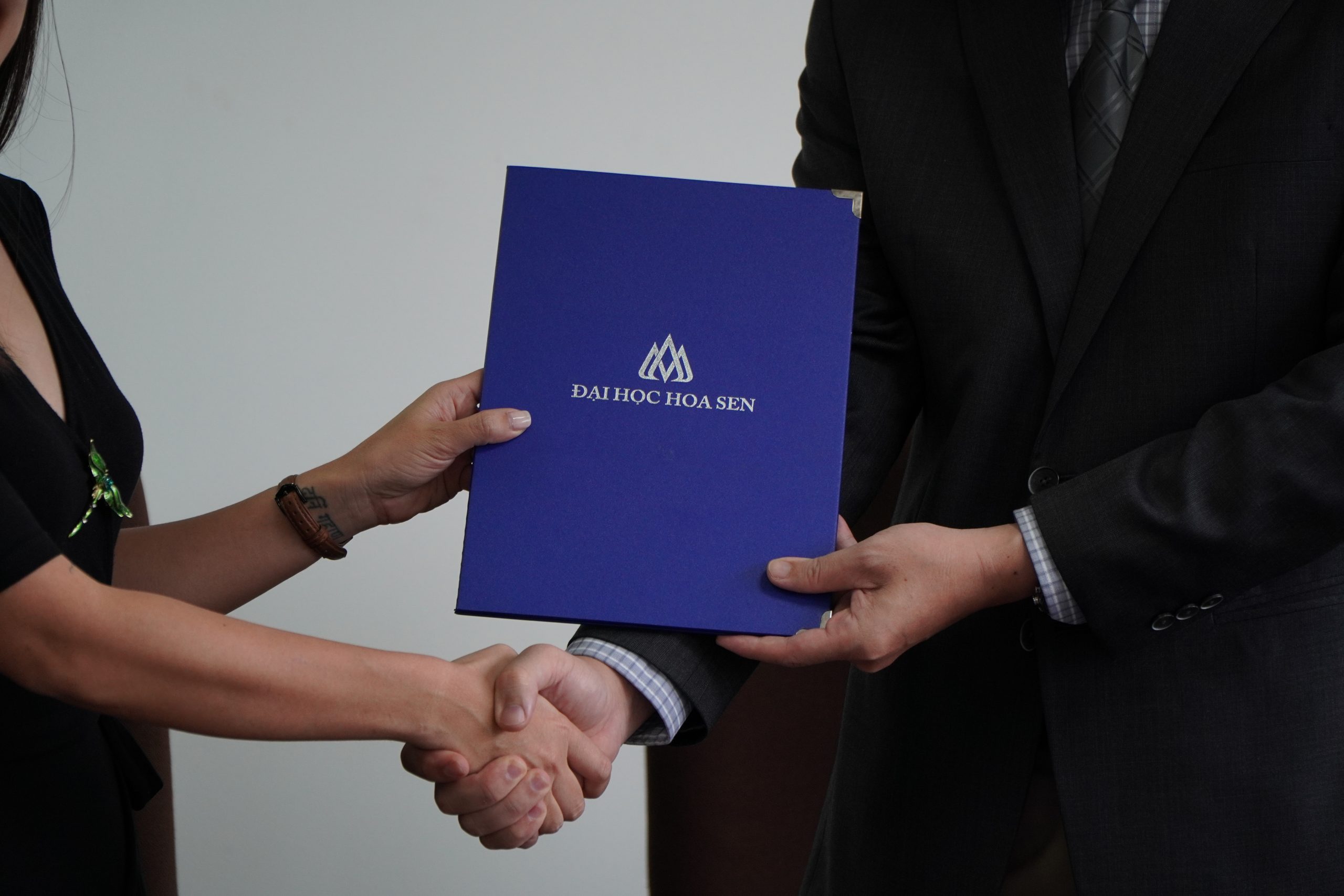 Buổi lễ lý kết vinh dự đón tiếp đại diện phía Khoa Kinh tế – Quản trị: TS. Phan Võ Minh Thắng – Trưởng khoa Khoa KTQT ; ThS. Huỳnh Thị Thuỳ Dương – GĐCT ngành Digital Marketing ; ThS. Đặng Trương Thuỳ Anh – GV ngành Marketing ; Chị Trương Võ Hạnh Dung – Chuyên viên Truyền thông, Tuyển sinh & Trải nghiệm sinh viên ; Chị Trần Kim Ngọc- Thư ký khoa ; Chị Đào Thanh Trúc – Cố vấn học tập.