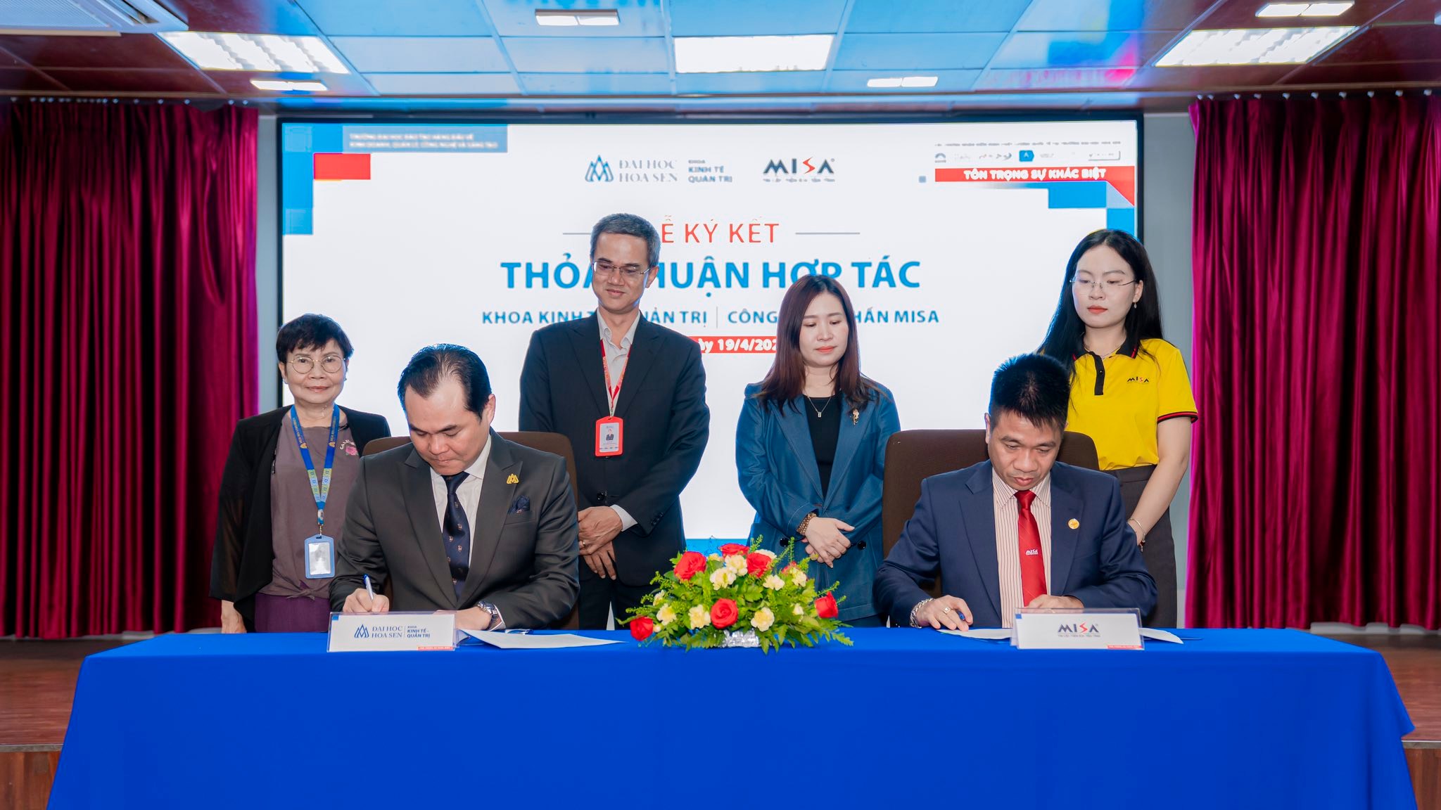Sáng ngày 19 tháng 4 vừa qua, Khoa KT-QT đã long trọng tổ chức thành công Buổi Lễ ký kết thỏa thuận hợp tác với Công ty Cổ phần MISA – một trong những doanh nghiệp hàng đầu trong lĩnh vực cung cấp giải pháp phần mềm quản lý tại Việt Nam. Sự kiện ý nghĩa này đã vinh dự đón nhận sự tham gia nhiệt tình của gần 100 bạn sinh viên ưu tú đến từ chuyên ngành Quản trị Kinh doanh.