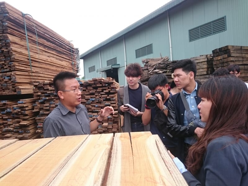 GĐ Nguyễn Thanh Lam giải thích quy trình chế biến hàng nội thất gỗ steak xuất khẩu sang Châu Âu