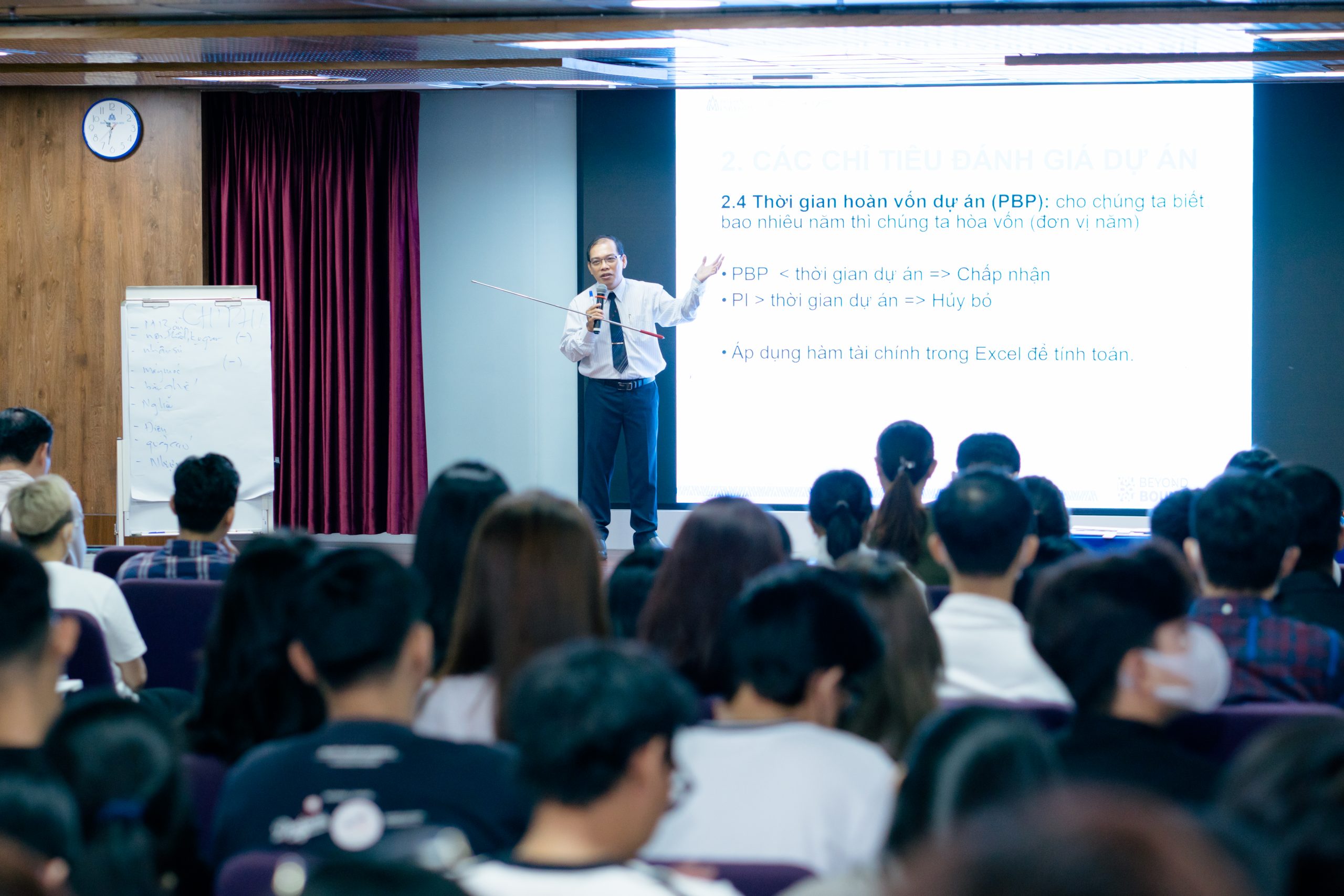 Thông qua Workshop này, thầy đã trao đổi với các nội dung chủ chốt quan trọng trong bất kỳ dự án kinh doanh như các yếu tố thành lập dự án, doanh thu, chi phí dự án, và các chỉ tiêu đánh giá dự án. Đây cũng là những kiến thức thực tế đến các bạn đang thực hiện dự án kinh doanh trong Cuộc thi HSU Business Challenge – HBC 2023.