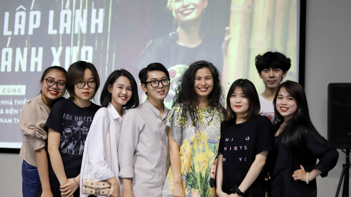 Nhà thiết kế Thủy Nguyễn chụp ảnh kỷ niệm cùng các bạn sinh viên.