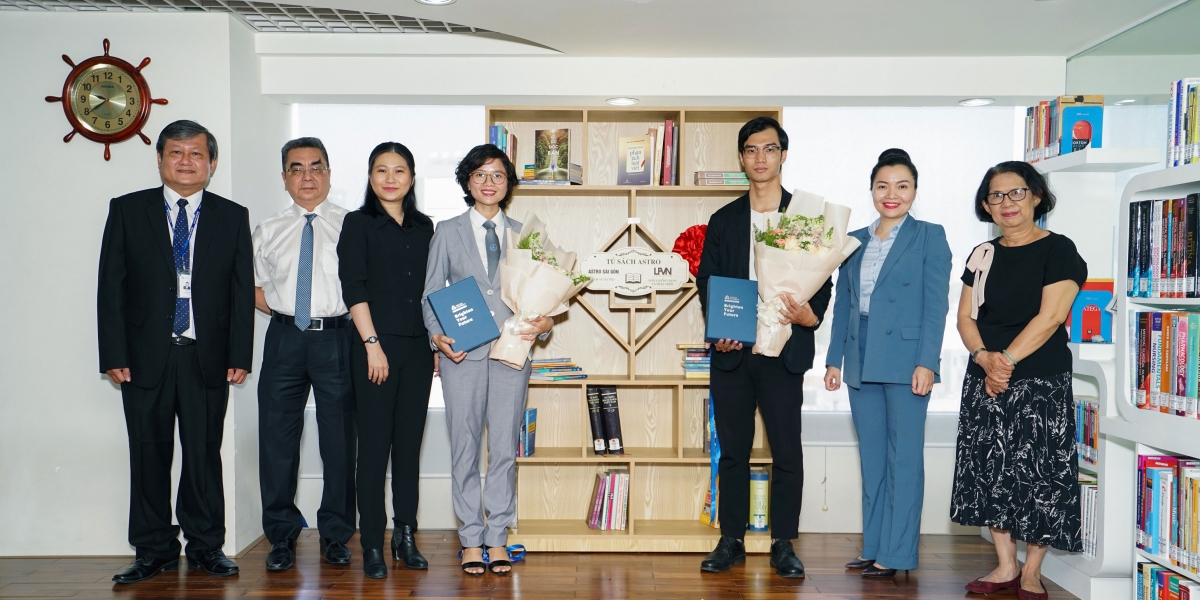 Đại diện hãng Luật LPVN và công ty TNHH ASTRO SAIGON trao tặng Tủ sách pháp lý cho Khoa Luật HSU.