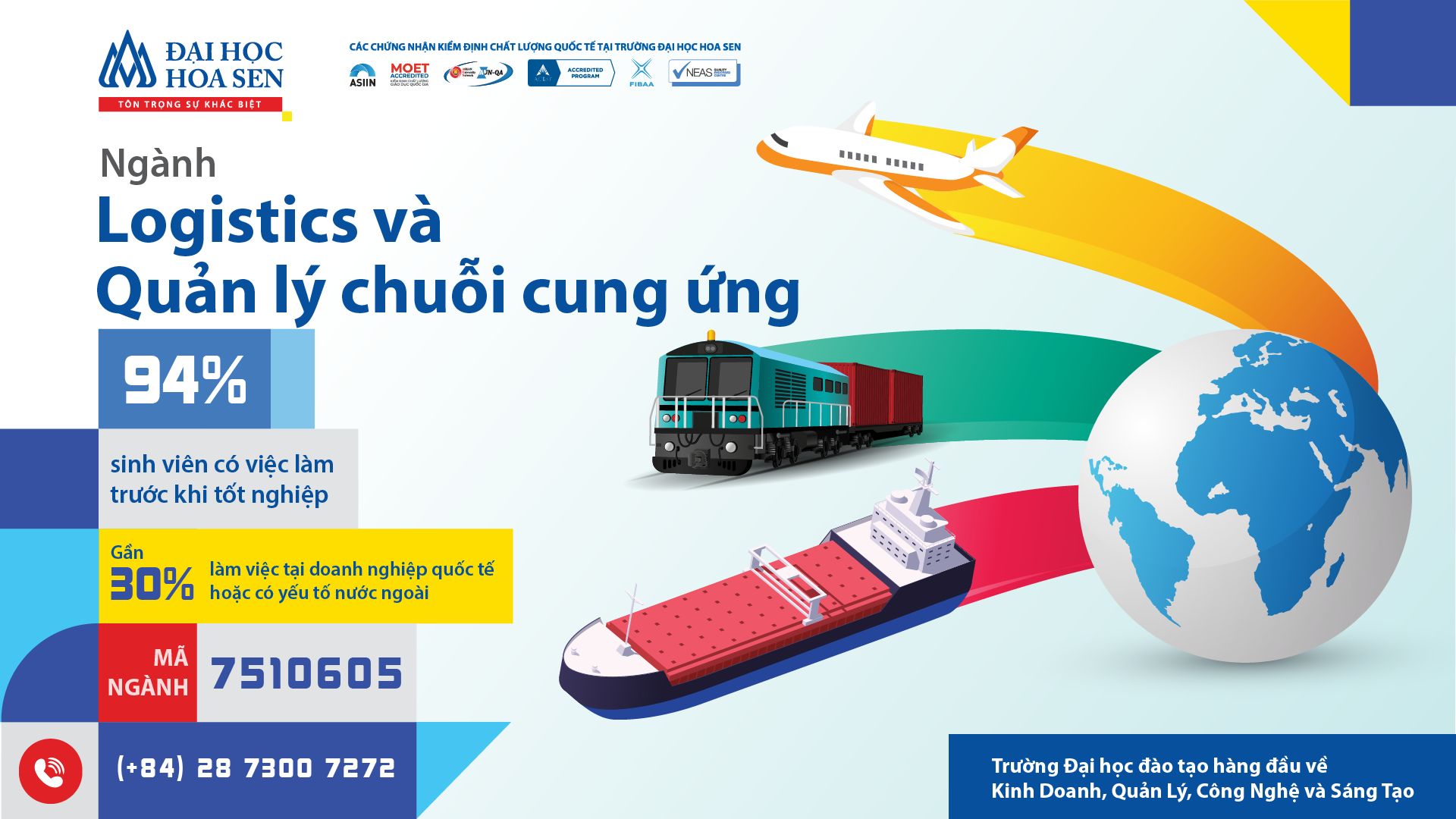 Toàn cầu hóa và chuyển đổi số đang định hình lại cấu trúc nền kinh tế thế giới, kéo theo sự thay đổi trong cách vận hành thương mại, quản trị chuỗi cung ứng và tối ưu trải nghiệm người dùng trên nền tảng thương mại điện tử. Tại Việt Nam, các lĩnh vực như Logistics, Quản trị chuỗi cung ứng, Kinh doanh quốc tế, Thương mại điện tử đang chứng kiến tốc độ tăng trưởng mạnh mẽ. Từ đó cho thấy, triển vọng nghề nghiệp của các nhóm ngành này là vô cùng rộng mở. Đáp ứng xu thế đó, chương trình đào tạo tại Khoa Logistics – Thương mại Quốc tế gồm ba ngành học, được thiết kế đạt chuẩn quốc tế và bám sát nhu cầu thực tiễn của thị trường nhân lực.