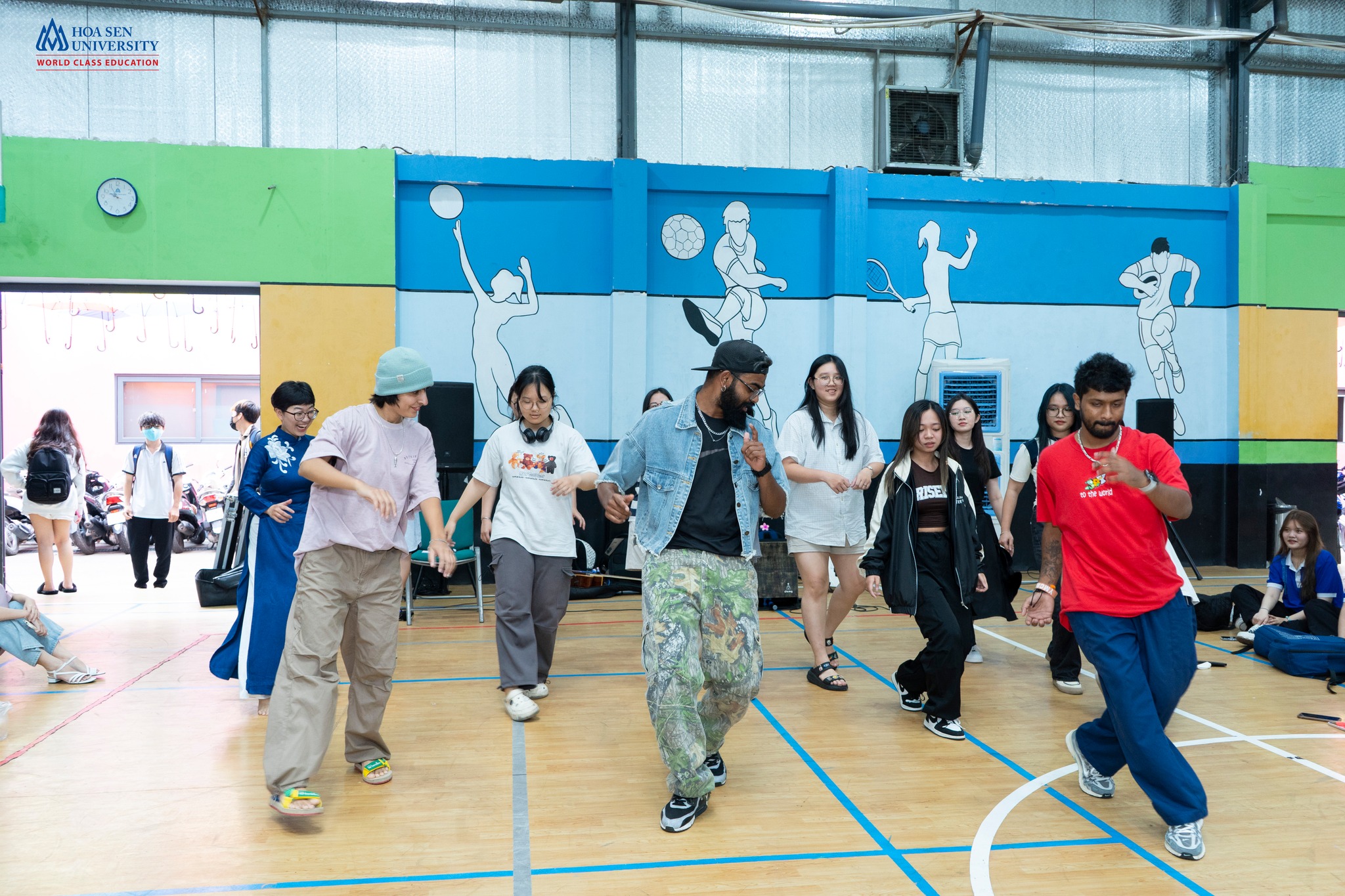 Bên cạnh những màn biểu diễn dành tặng thí sinh từ các nước, HSUers cũng trổ tài nhảy solo và thử sức với Hiphop dưới sự hướng dẫn của các thí sinh HIPFEST Quốc tế.