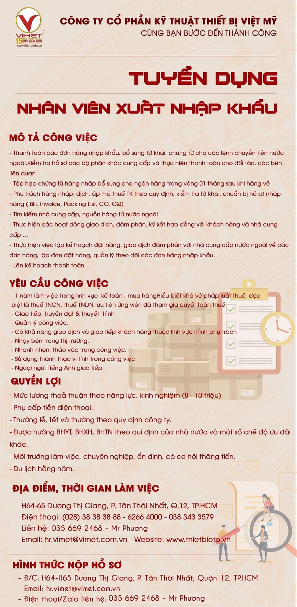 - Email: hr.vimet@vimet.com.vn