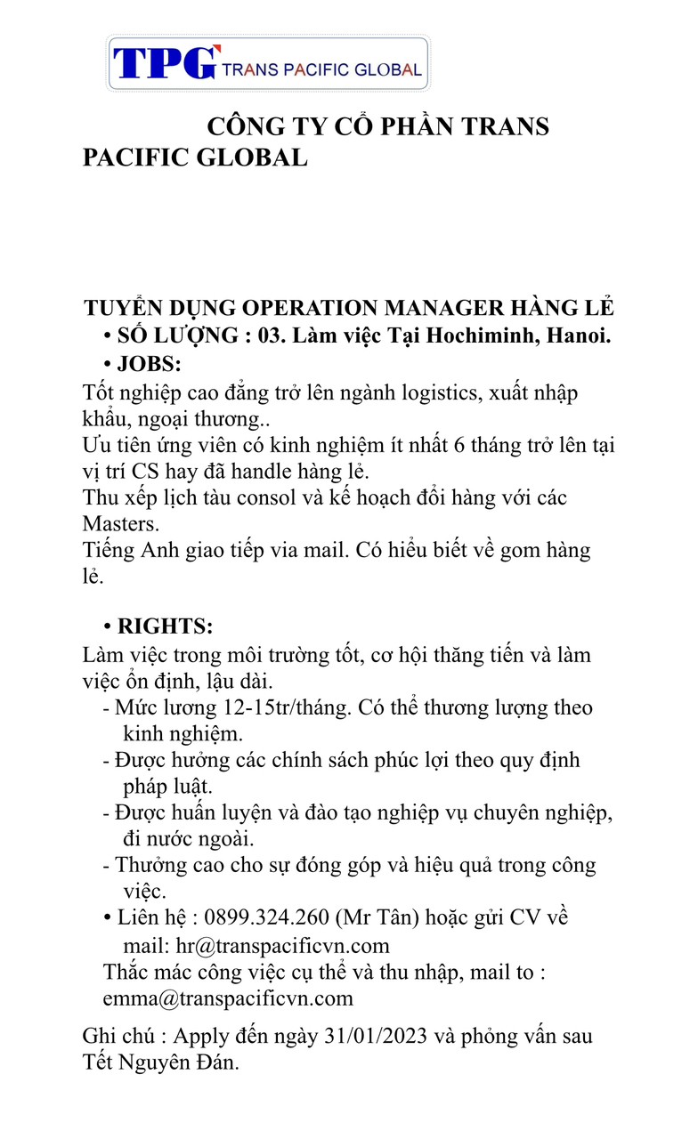 CÔNG TY CỔ PHẦN TRANS PACIFIC GLOBAL
