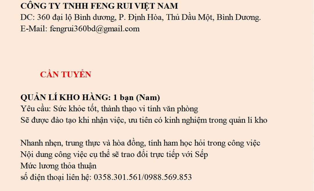 CÔNG TY TNHH FENG RUI VIỆT NAM