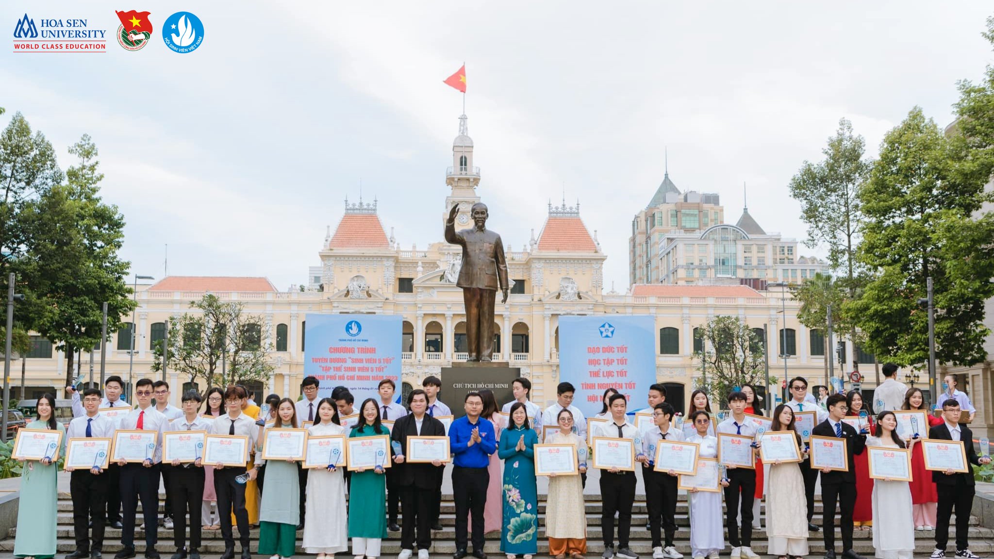 In the exciting atmosphere of activities to celebrate the 74th Anniversary of the Traditional Day of Students and the Vietnamese Student Association (January 9, 1950 – January 9, 2024), January 14, 2024, the Board of The Secretary of the Vietnamese Student Association in Ho Chi Minh City organized a flower offering program to recognize President Ho Chi Minh and commend “5 Good Students” and “5 Good Student Collective” in Ho Chi Minh City in 2023.