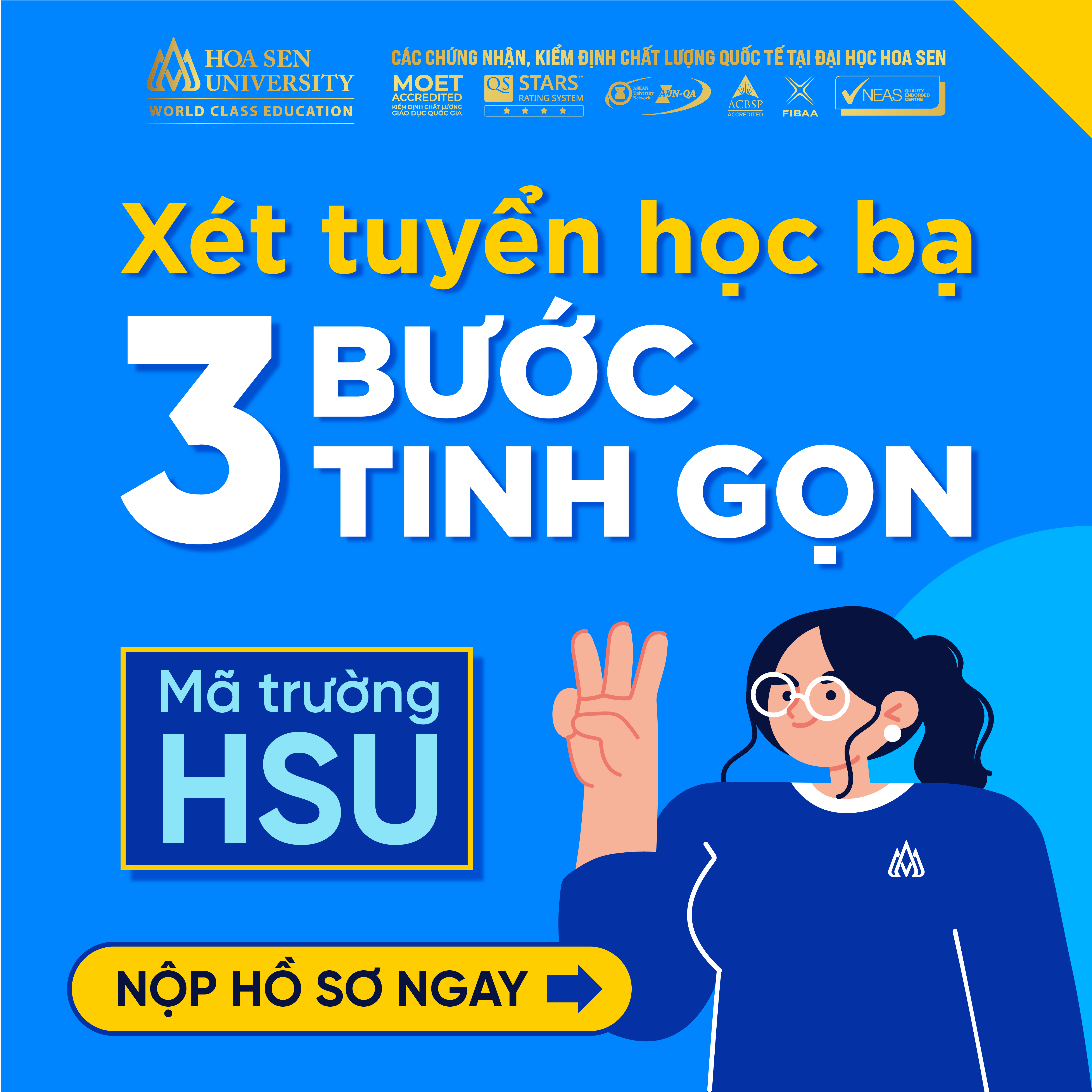 SUBMIT BY POST: Clearly state on the cover letter: “Admission application file” -Address: Training Department, Hoa Sen University, No. 8 Nguyen Van Trang, District 1, City. Ho Chi Minh.
