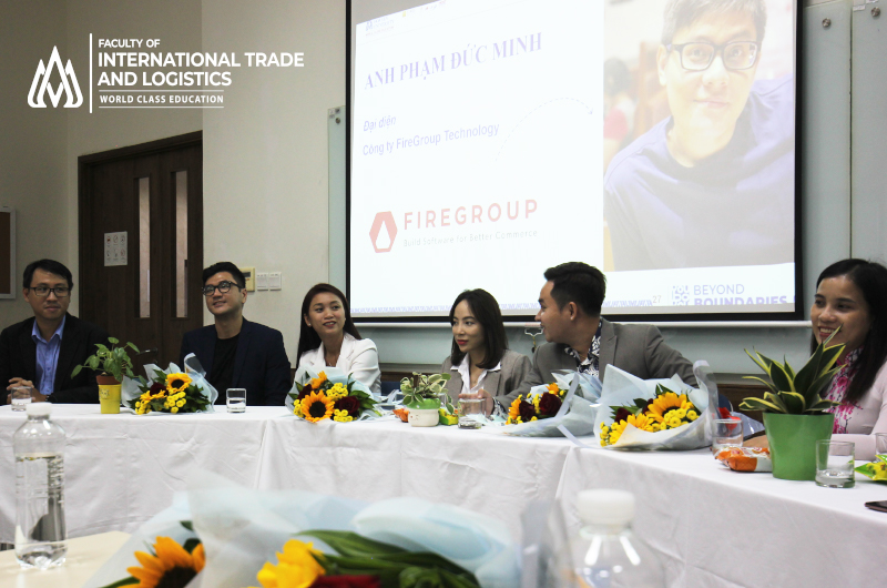 At the seminar, Mr. Pham Duc Minh – Representative of FireGroup Technology had a presentation about job opportunities in the field of E-commerce, as well as sharing the requirements and necessary skills that the company needs. Students need to equip themselves while sitting at school to succeed in work.