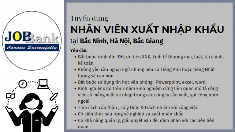 Job descriptionJobbank’s customer is a Japanese company specializing in the production of polarized filmWorking location: VSIP BN Industrial Park – Phu Chan Commune – Tu Son Town – Bac NinhVacancy/Positions: IMPORT-EXPORT DEPARTMENT STAFF (LG) Job descriptionWork with the Japanese Director of BP and the Vietnamese Department Head + 6 other employees in the department1) Process management, handling import and export customs procedures. – Monitor and check the status of import/export shipments, make plans to handle Customs procedures. Discuss with Logistics team, relevant departments, Forwarder & customers to make delivery plans. Always monitor closely to ensure delivery schedule. – Manage the...