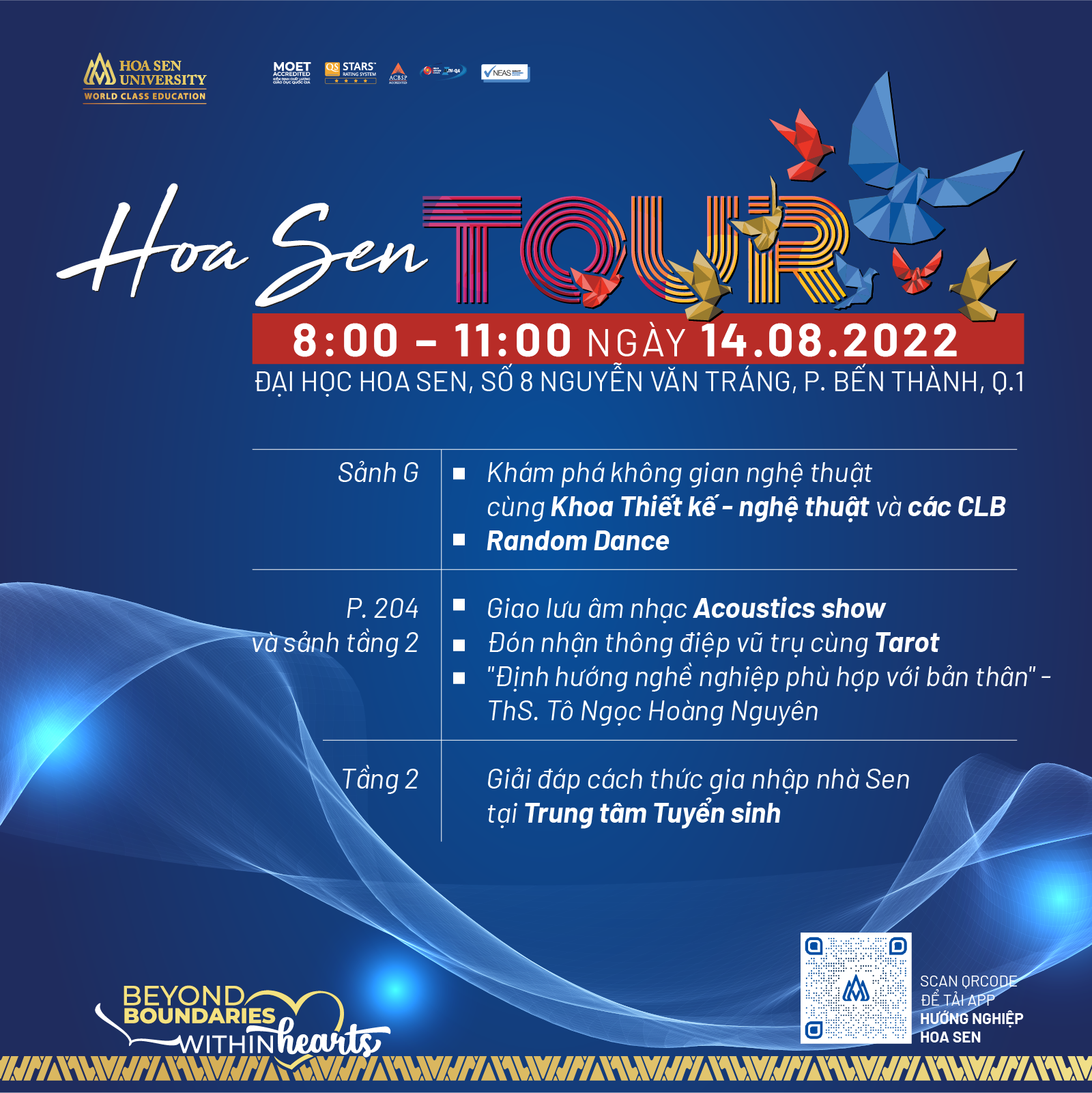 Only on August 14, Hoa Sen University will organize the Hoa Sen Festival Tour to explore 34 trending majors, without worrying about lack of jobs when graduating. Attending this event, you will be transformed into a stylish HSU-er, experiencing exciting activities from 8 Faculties and nearly 30 clubs.