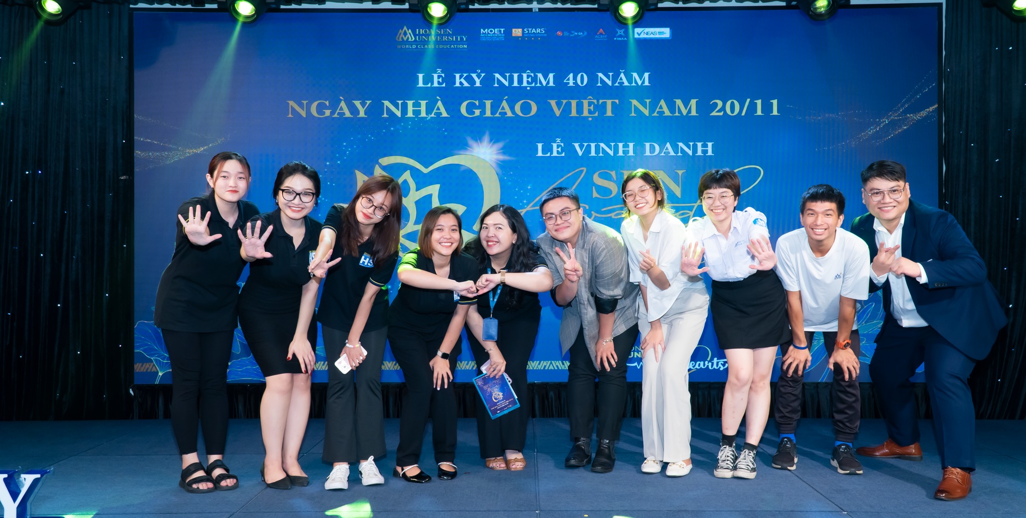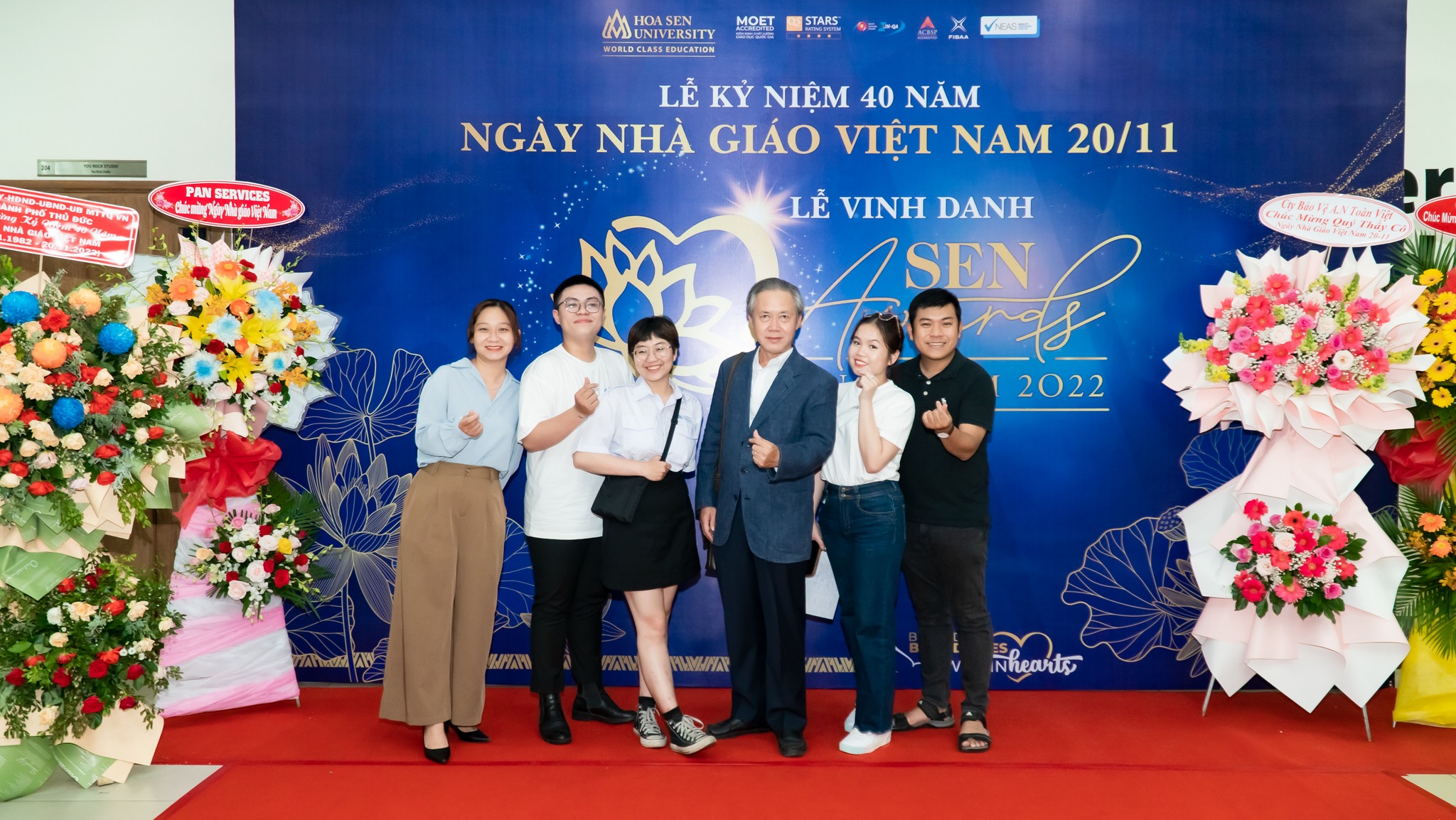 The entire Board of Directors, lecturers and staff of Hoa Sen University took photos to celebrate the 40th anniversary of Vietnamese Teachers’ Day and the 2022 Sen Awards ceremony.