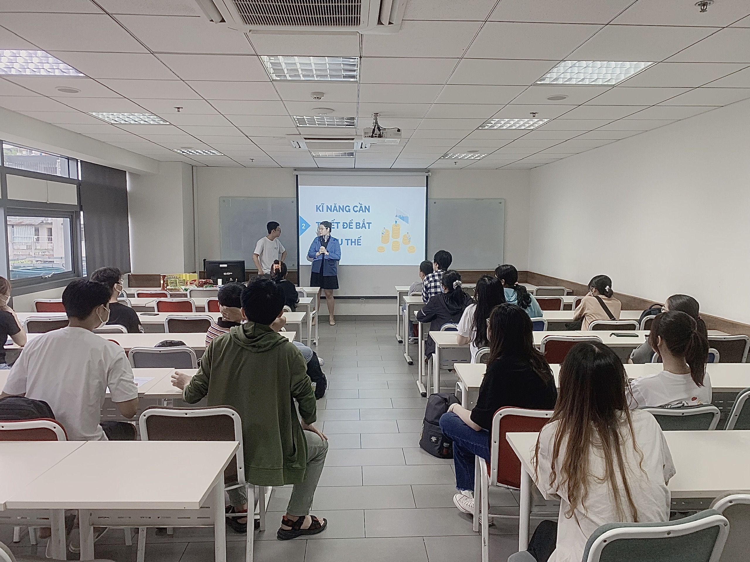 Also during the class, Ms. Tran Ngoc Quynh shared and imparted knowledge, experience, and practical skills to help you improve and develop yourself. In addition, students were also discussed to deepen their understanding of life and social issues and knowledge about three majors: International Business, Logistics, and E-commerce.
