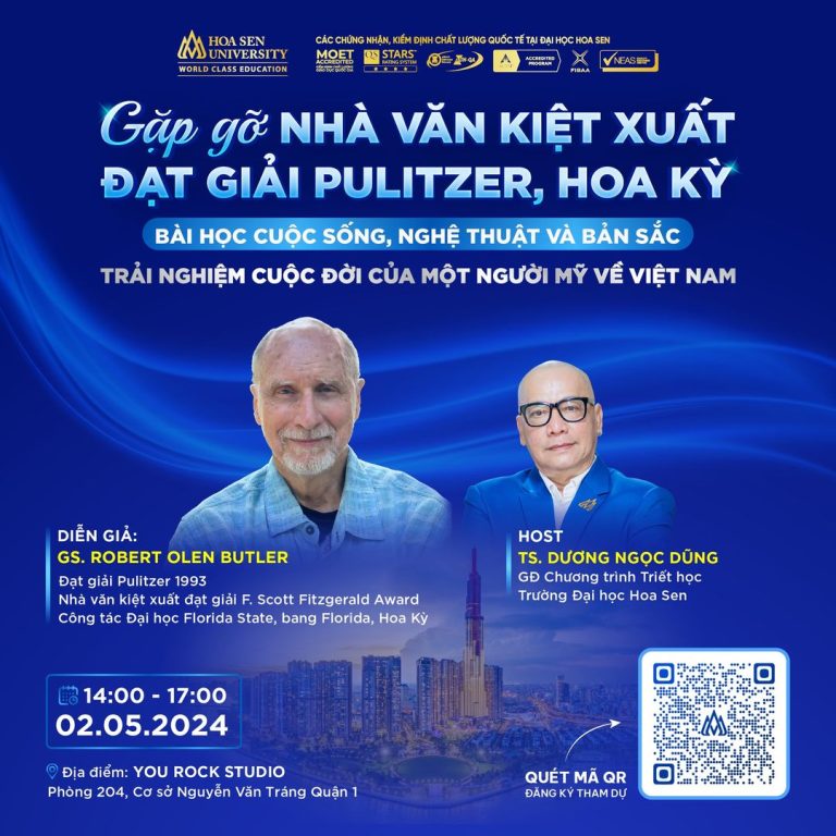 Unveil a Literary Mastermind: Pulitzer Winner – Robert Olen Butler! Ever wondered what inspires a Pulitzer Prize-winning author? RSVP here: https://forms.gle/QVAN88JoTnZw11n39 Join us for an inspiring talk with Pulitzer Prize winner Robert Olen Butler. Prepare to be swept away by his unparalleled journey, a tapestry woven from life, art, and the search for identity. Vietnam, a place that profoundly shaped him and his work, will also be brought to life through his insightful storytelling. Date: Thursday, May 2nd , 2024 Time: 2:00 PM – 7:00 PM Venue: Room 204, Hoa Sen University, 08 Nguyen Van Trang, District 1, Ho Chi...