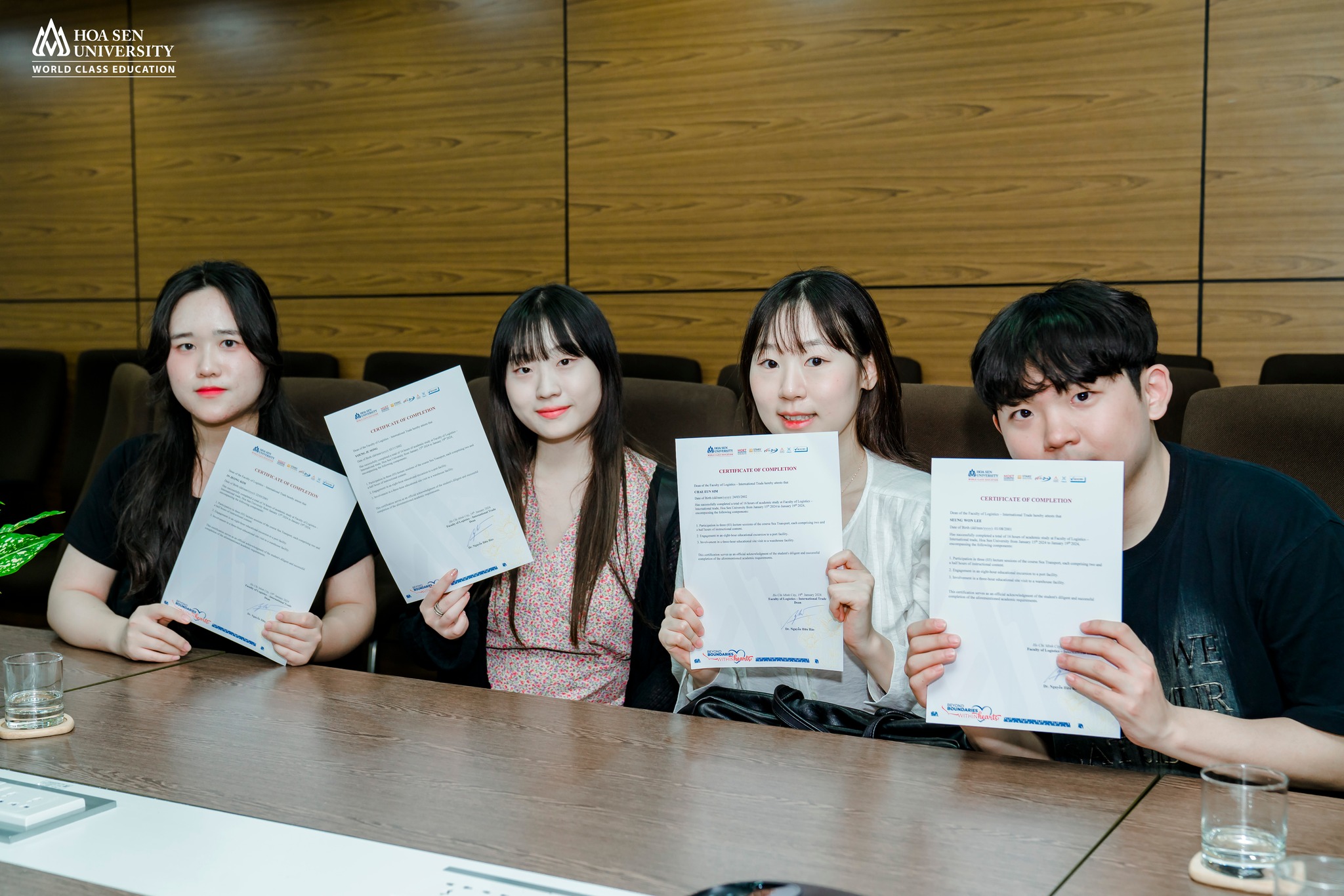 Vừa qua, các bạn sinh viên Hàn Quốc học tại HSU lớp Vận tải thủy của ThS. Trần Thị Trúc Lan – Giám đốc chương trình Logistics & Quản lý chuỗi cung ứng đã có buổi gặp gỡ, chia sẻ cùng giảng viên HSU và nhận giấy chứng nhận hoàn thành các buổi học.
