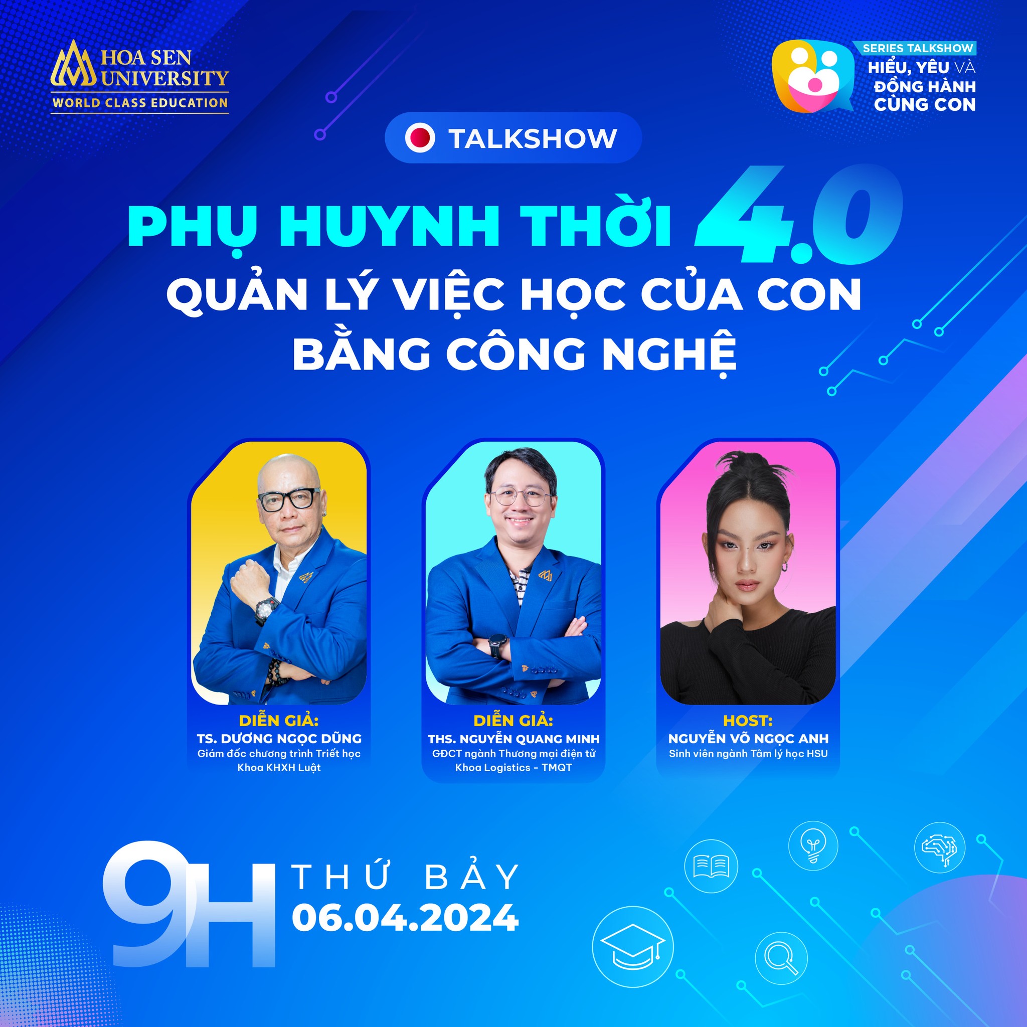 Đó sẽ là chủ đề mà các chuyên gia, thầy cô HSU chia sẻ trong tập 3 chương trình talkshow “Hiểu, yêu, đồng hành cùng con” #3: Phụ huynh thời 4.0 – Quản lý việc học của con bằng công nghệ.