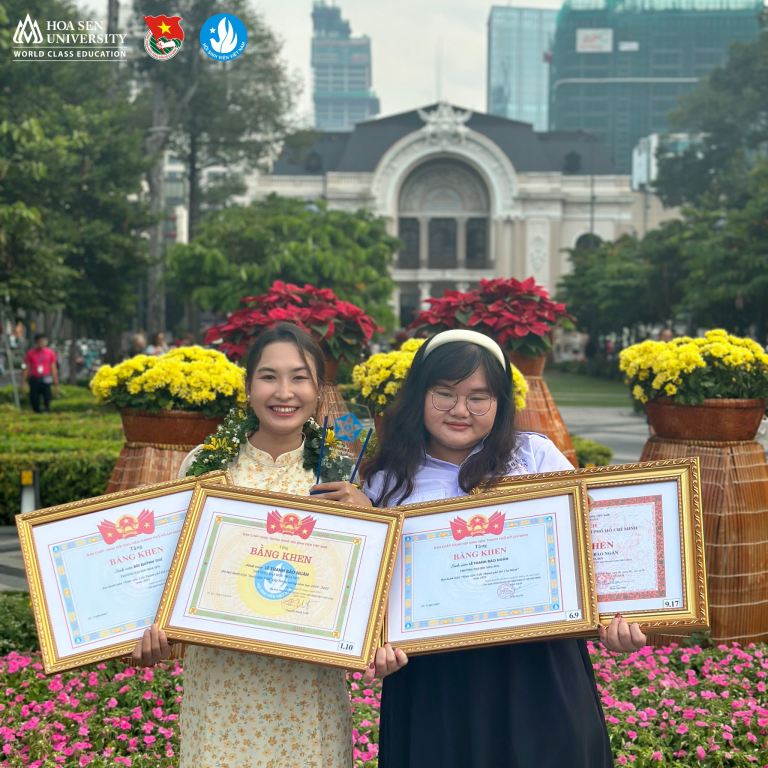 In the exciting atmosphere of activities to celebrate the 74th Anniversary of the Traditional Day of Students and the Vietnamese Student Association (January 9, 1950 – January 9, 2024), January 14, 2024, the Board of The Secretary of the Vietnamese Student Association in Ho Chi Minh City organized a flower offering program to recognize President Ho Chi Minh and commend “5 Good Students” and “5 Good Student Collective” in Ho Chi Minh City in 2023. Among them, Hoa Sen University had 02 outstanding students honored: Le Thanh Bao Ngan – Accounting student, member of the School Youth Union’s Executive Committee...