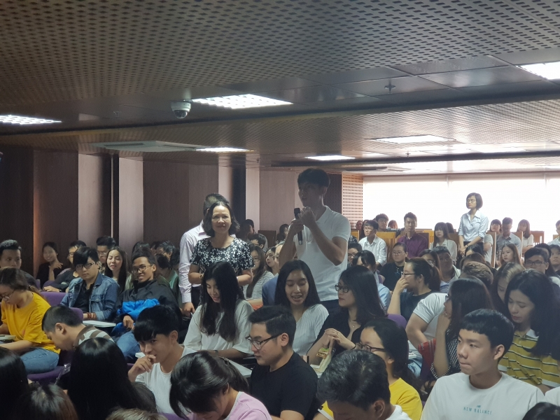 Không khí trong khán phòng vô cùng hào hứng với phần đặt câu hỏi khá thú vị và rất sát thực tế từ các bạn sinh viên Hoa Sen dành cho hai diễn giả như với 10 triệu đồng thì em nên đầu từ gì để có hiệu quả cao nhất? Các diễn giả cùng với những giảng viên trường Hoa Sen đã đưa ra những lời tư vấn thiết thực về việc nên chọn khởi đầu ở vị trí nào khi xin làm việc tài các công ty Tài chính. Đầu tiên các bạn hãy nên trang bị cho mình chứng chỉ CFA (chứng chỉ phân tích đầu tư tài chính).