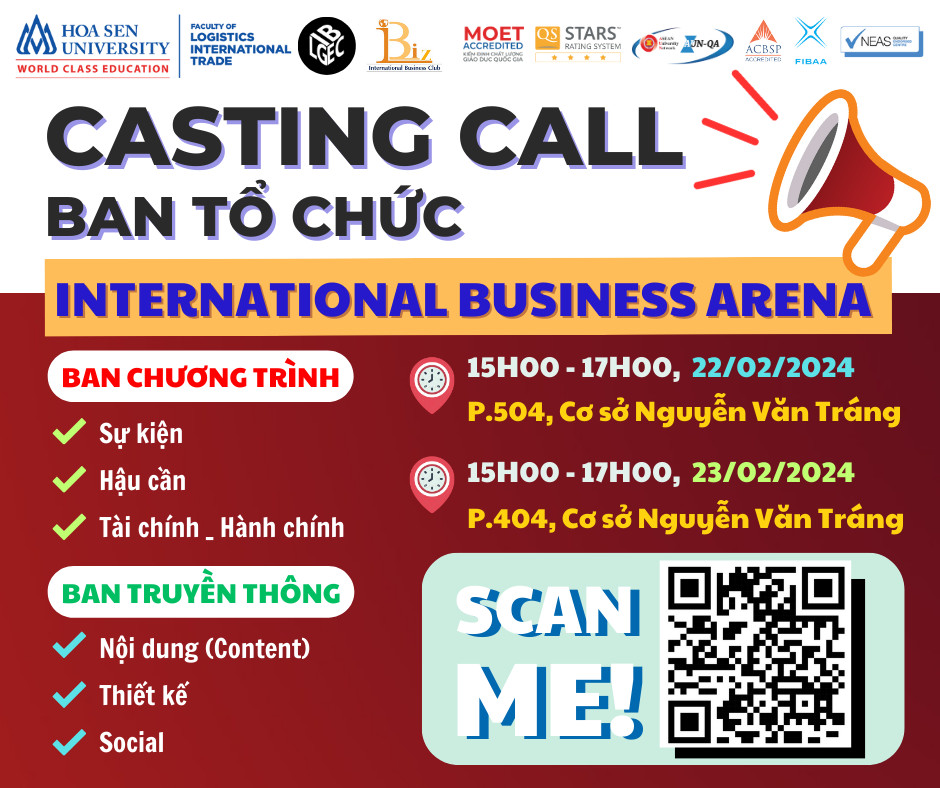 Tổ chức casting call cho các vị trí Ban Tổ Chức cuộc thi “Đấu trường thương mại quốc tế 2 – International Business Arena 2 (IBA)”.
