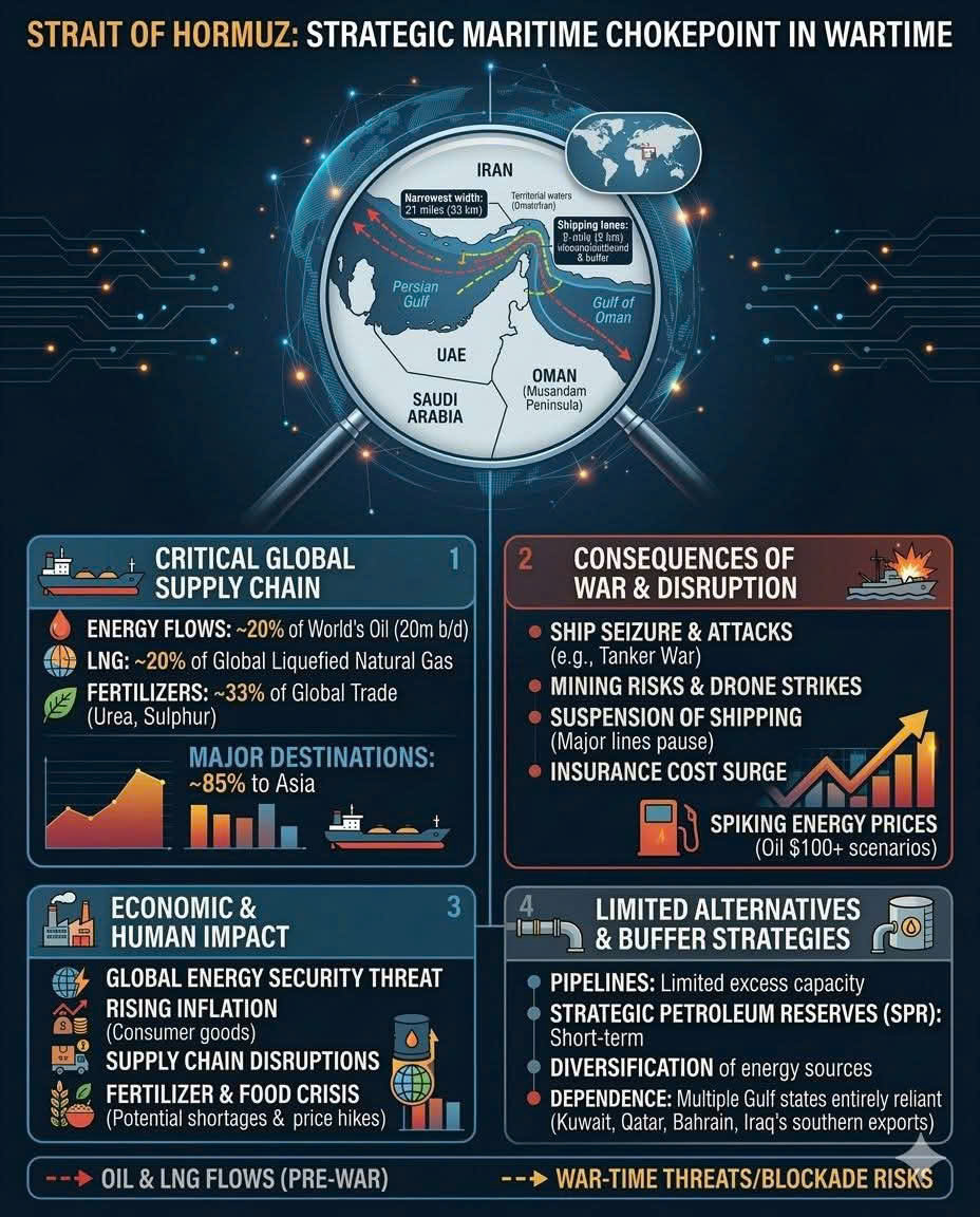 - Sự phụ thuộc của vùng Vịnh: Nhiều quốc gia như Kuwait, Qatar, Bahrain và miền Nam Iraq hoàn toàn phụ thuộc vào tuyến đường này để xuất khẩu năng lượng.