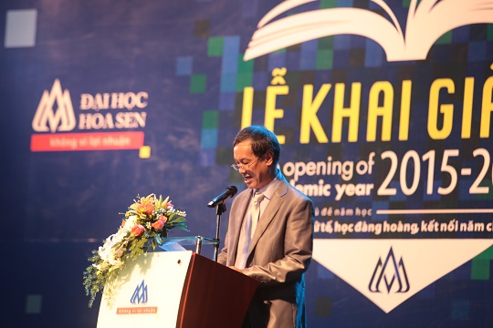 At the ceremony, Dr Bui Tran Phuong, the university’s rector, congratulated the students for passing the difficult university entrance examinations. She also said that: all of you should know that Hoa Sen University has a flexible credit based system that allows you to take classes from the programs that you like. You can study for more than one major. You will find a lot of support you need from the university to complete your education here. We have nice libraries, high caliber faculty members, dedicated staff, a zillion activities, and a commitment to make you better connected and informed citizens. So do not waste your opportunities and time at Hoa Sen University. In this democratic and open environment, you have to respect everyone to earn respect.”
