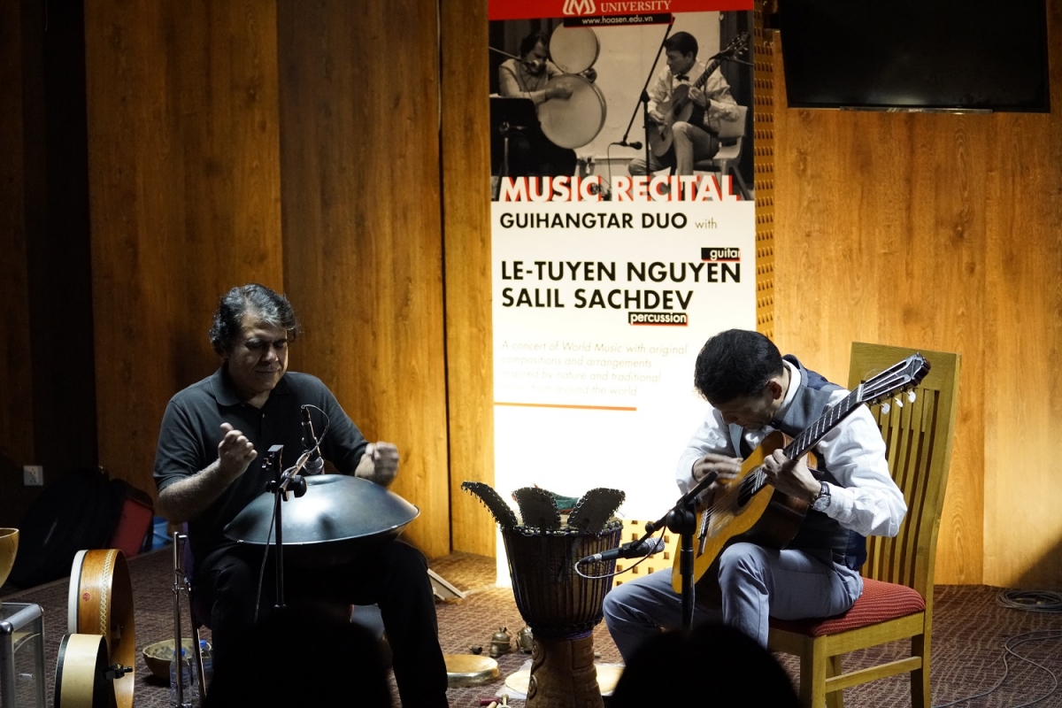 Nhạc sĩ Salil Sachdev và nhạc sĩ Lê Tuyên trong bản Euphoria (Phấn khởi)