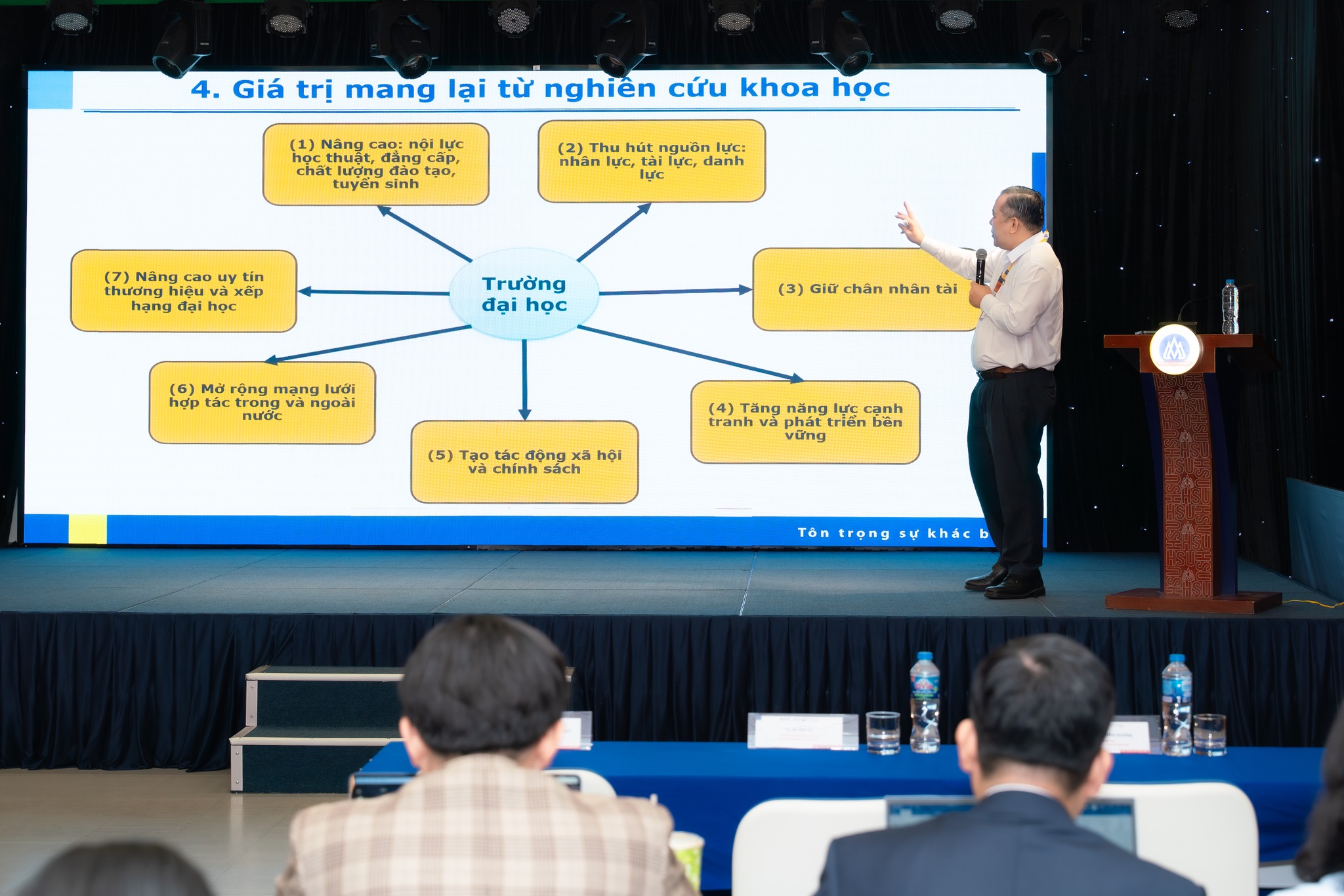 Tại HSU, nghiên cứu khoa học không tách rời giảng dạy mà trở thành một phần trong quá trình đào tạo. Sinh viên được khuyến khích tham gia vào các hoạt động nghiên cứu, từng bước hình thành tư duy chủ động, khả năng sáng tạo và năng lực giải quyết vấn đề.