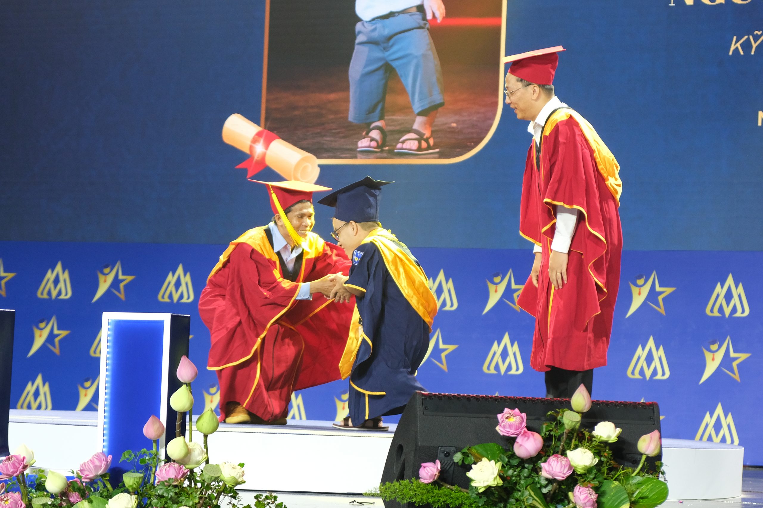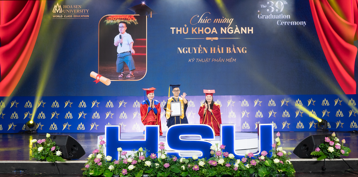 Cũng tại Lễ tốt nghiệp, hình ảnh Nguyễn Hải Bằng – chàng trai “hạt tiêu” nhận danh hiệu thủ khoa ngành Kỹ thuật phần mềm khiến nhiều người khâm phục. Bằng không may mắn như bao bạn bè vì chỉ cao 1.2 mét. Tuy nhiên, vượt qua những rào cản về sức khỏe và thể chất, Bằng đã xuất sắc giành nhiều suất học bổng như học bổng Khuyến học 2017, học bổng vượt khó 2018, 2019, học bổng Lotte 2020. Bằng hoàn thành chương trình học và trở thành Thủ khoa ngành Kỹ thuật phần mềm. Để khích lệ cũng như ghi nhận những nỗ lực của Hải Bằng, Nhà trường đã dành tặng bộ lễ phục Tốt nghiệp đặc biệt, được may theo số đo của Hải Bằng như một món quà trong buổi lễ quan trọng này.
