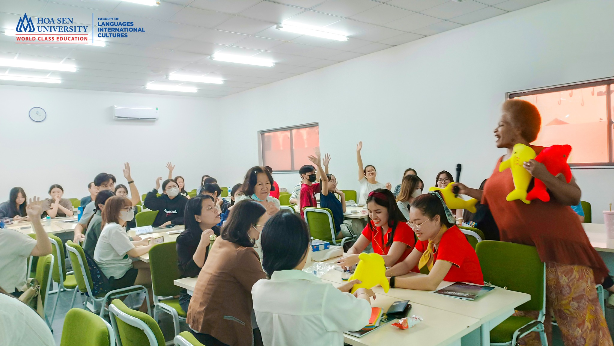 Tại HSU, bên cạnh các môn học theo chương trình đào tạo, các bạn sinh viên còn có cơ hội nâng cao kiến thức, kỹ năng chuyên môn thông qua các hoạt động cùng chuyên gia quốc tế, có nhiều năm kinh nghiệm trong lĩnh vực giảng dạy ngoại ngữ, đúng tinh thần ???̂? ????̂̉? ???̂́? ??̂́ tại HSU.