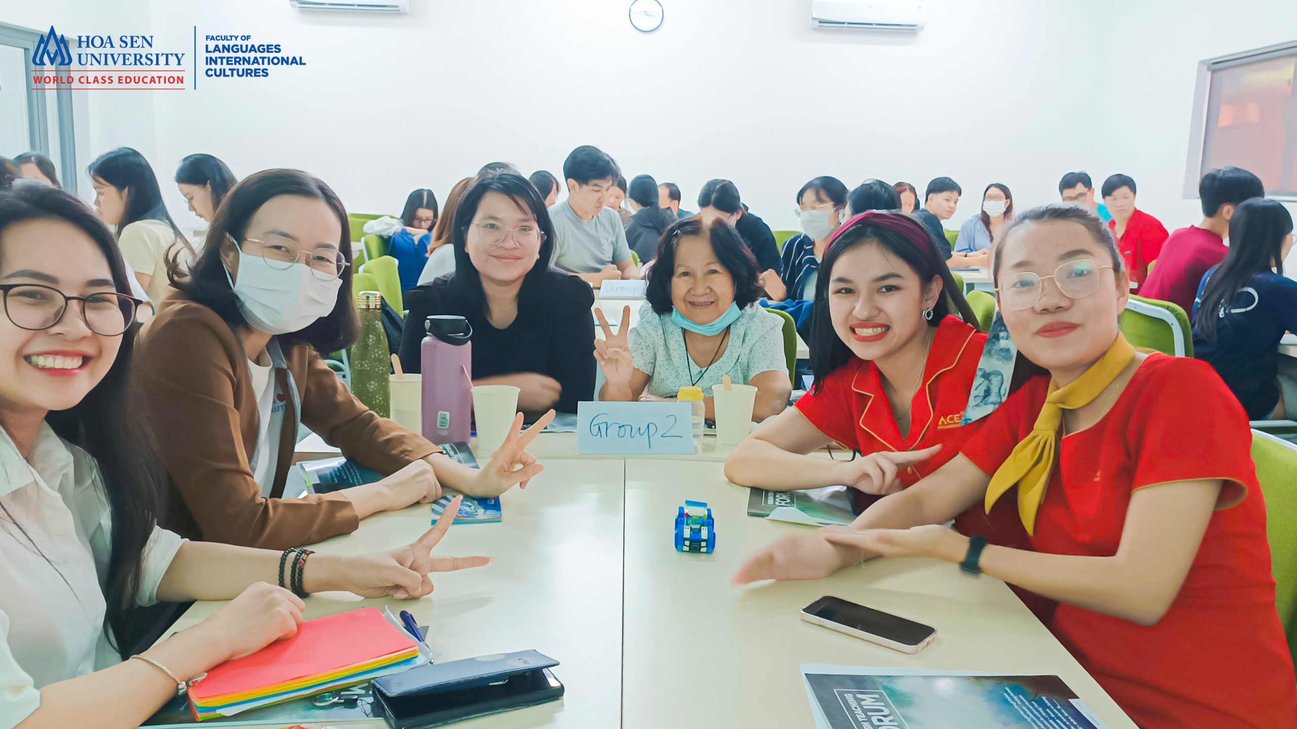 At HSU, in addition to the curriculum-based courses, students have the opportunity to enhance their knowledge and specialized skills through activities with international experts who have years of experience in foreign language teaching, aligning with the spirit of “Tiêu chuẩn quốc tế” (International Standards) at HSU.