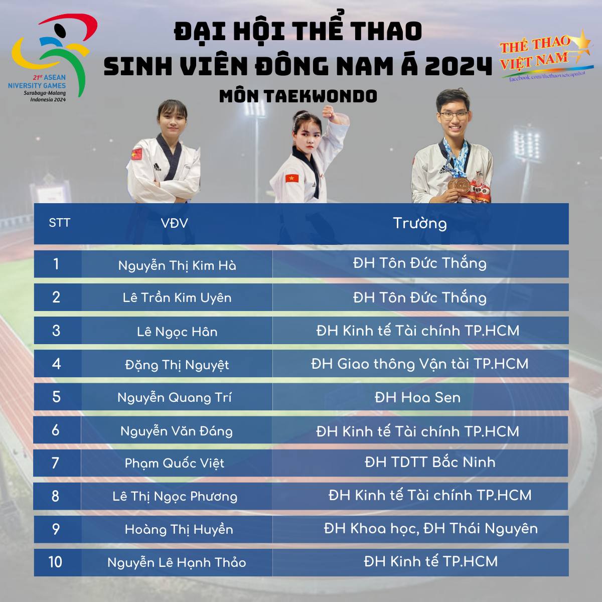 From June 25 to July 6, the 21st ASEAN University Games 2024 was held in Indonesia, attracting a large number of student-athletes from 11 countries in the region. By the end of the competition, Vietnamese student-athletes had won a total of 12 gold medals, 9 silver medals, and 5 bronze medals. The gold medals for Vietnamese student-athletes were earned in Athletics (6 golds), Chess (4 golds), and Taekwondo (2 golds).