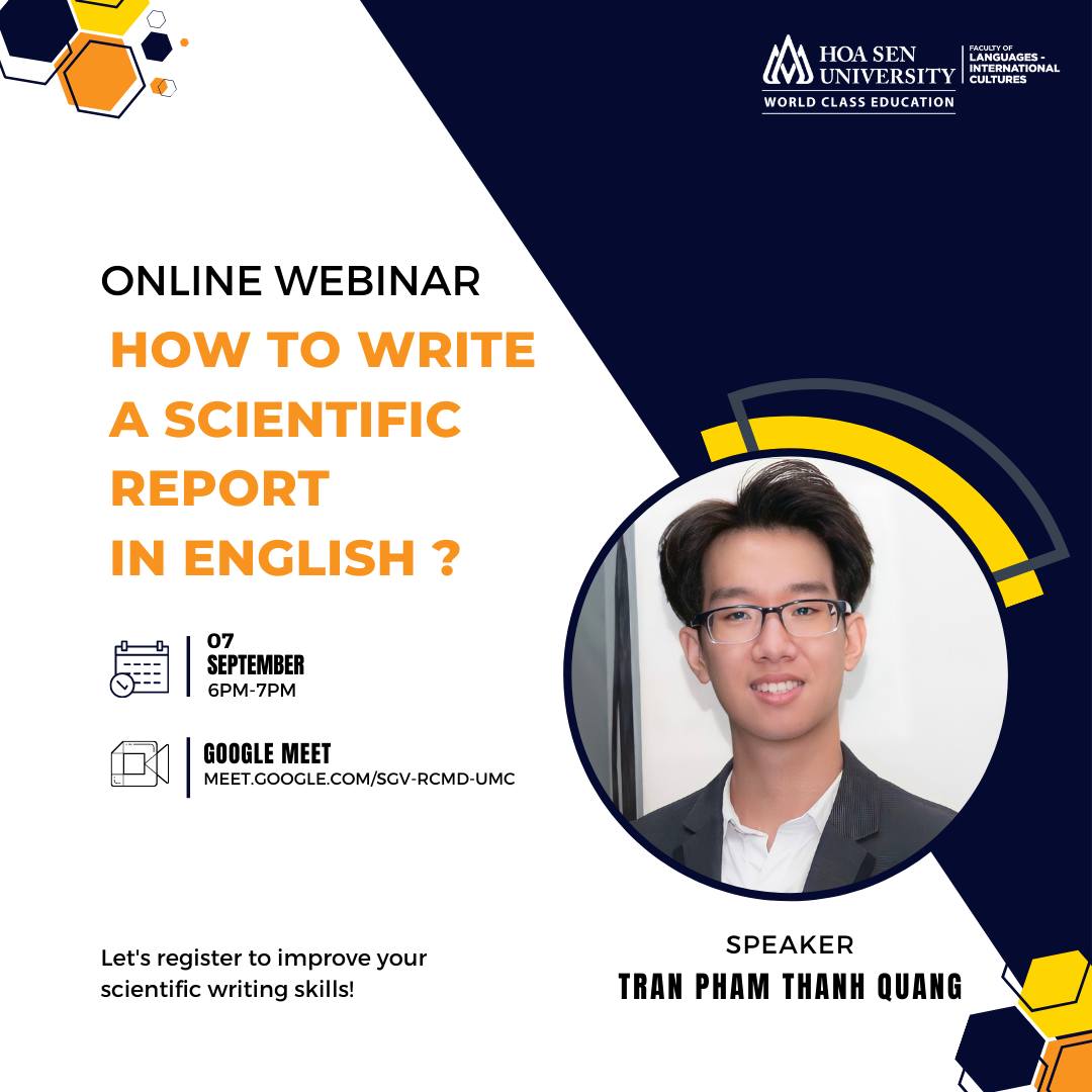 On September 7, from 18:00 to 19:00, there will be a sharing session on how to write a report in English which is very useful for students with the companionship of Tran Pham Thanh Quang – Student of Accounting Faculty of Finance – Banking.